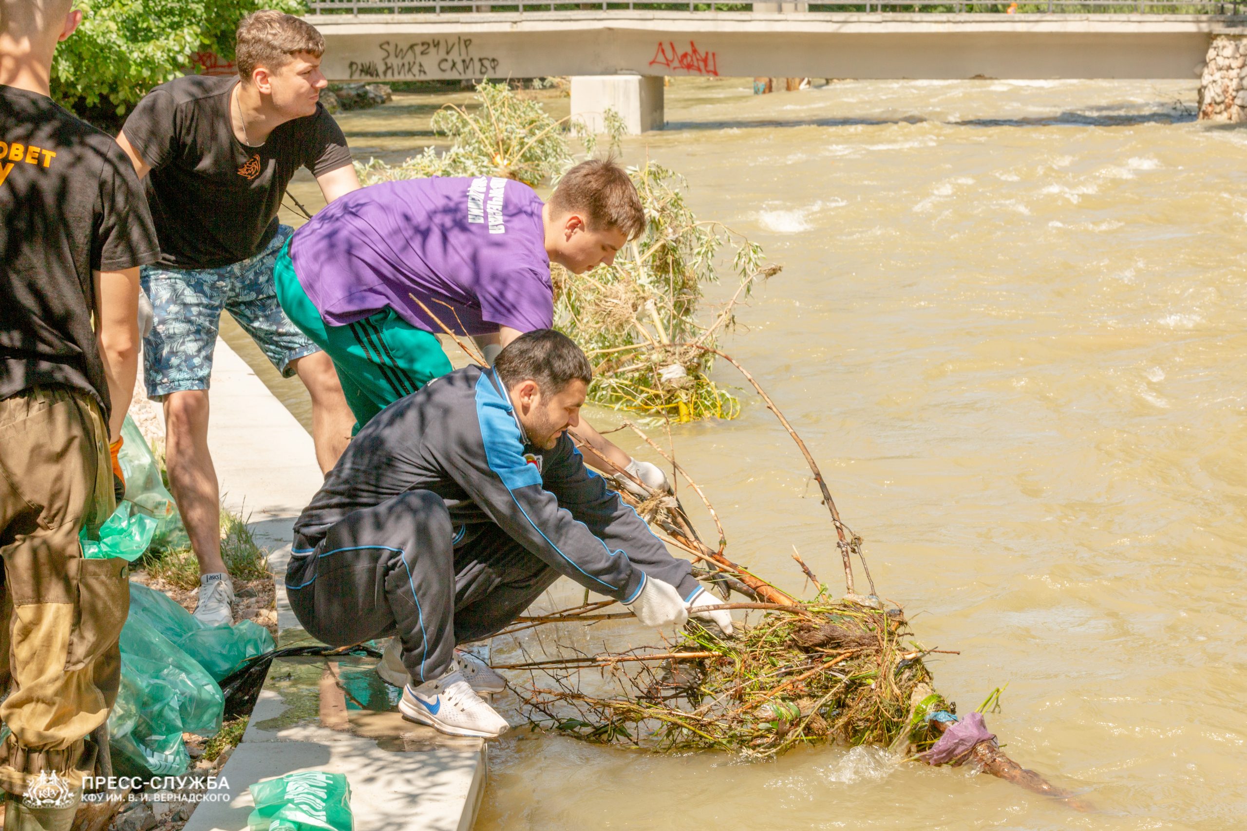 29 июня, Крымский федеральный университет. КФУ организовал работу волонтёров на р. Салгир в Киевском районе Симферополя для ликвидации последствий обильных осадков на полуострове.