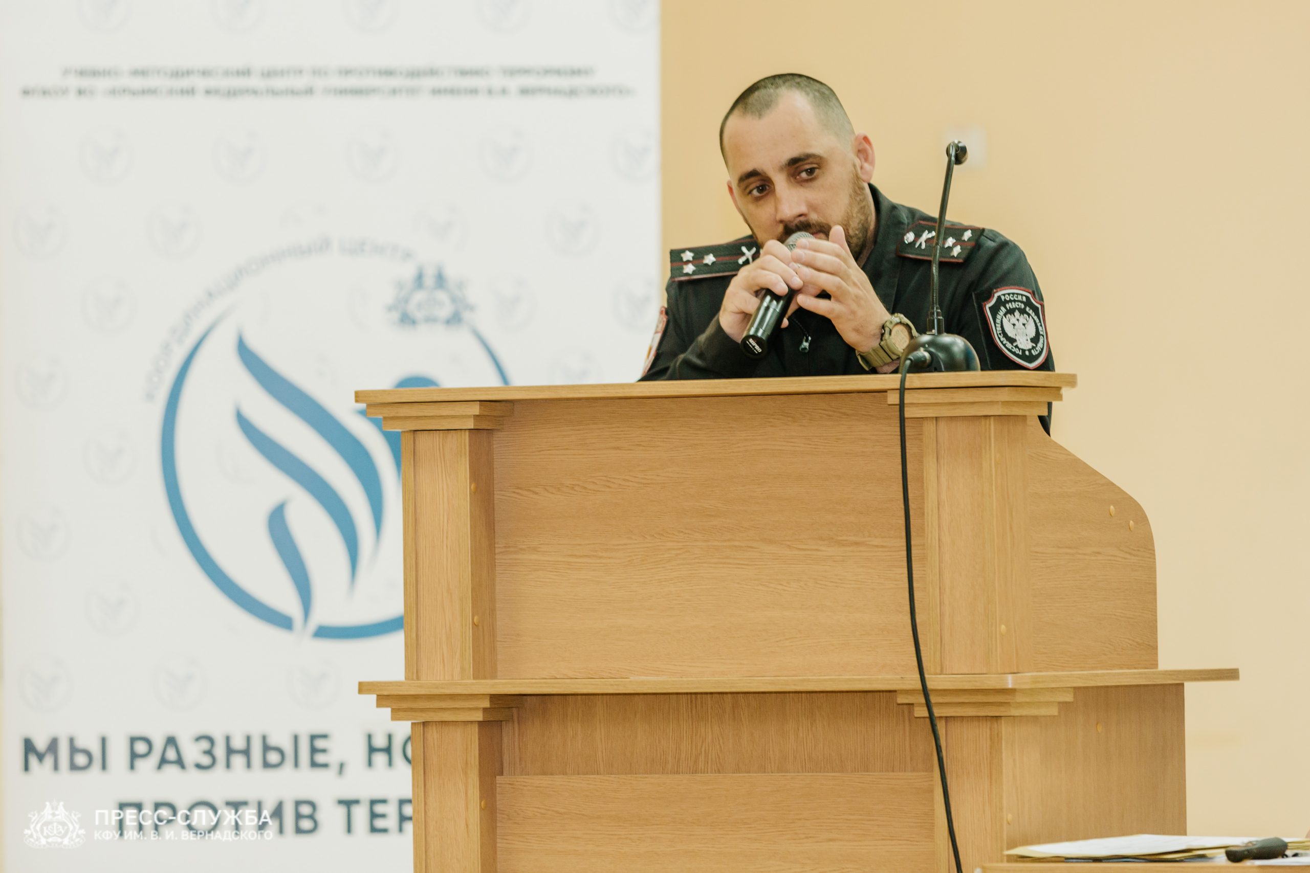 «Нас очень радует, что сегодня в зале так много молодых патриотов. Мы видим в вас людей, которые чтят подвиг своих предков, потому что они отдали жизни за то, чтобы мы жили сейчас. А бойцы, участвующие в Специальной военной операции, отдают жизни за наше будущее. Я уверен, что победителями, которые поедут на Парад Победы в Москву, станут крымчане, а именно студенты Крымского федерального университета», – обратился к участникам руководитель Союза казачьей молодёжи Крыма и Севастополя Алексей Борысюк.