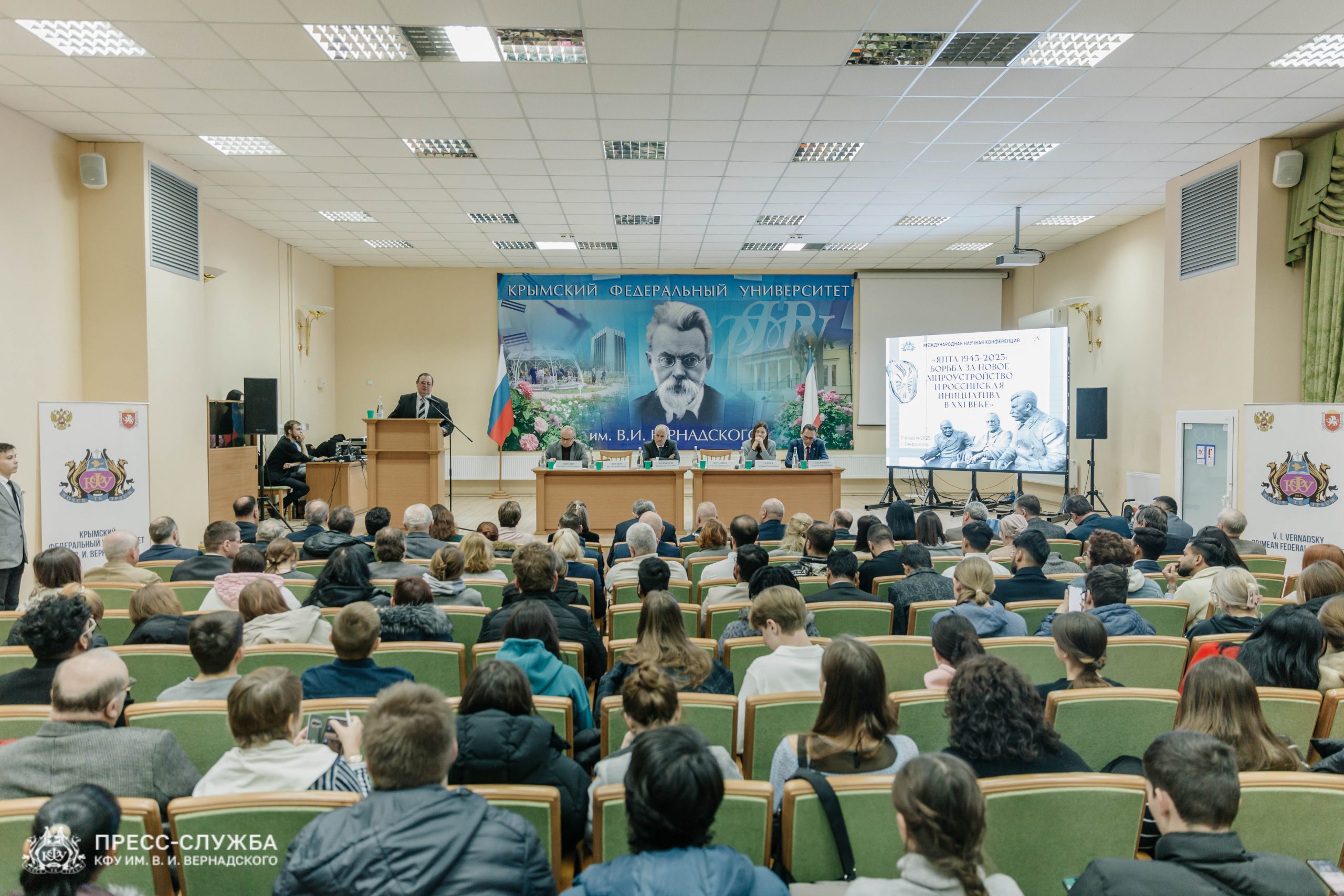 К 80-летию Крымской (Ялтинской) конференции союзных держав в Крымском федеральном университете им. В. И. Вернадского прошла международная научная конференция «Ялта 1945-2025: борьба за новое мироустройство и российская инициатива в XXI веке». Мероприятие организовано совместно с Ливадийским дворцом-музеем.