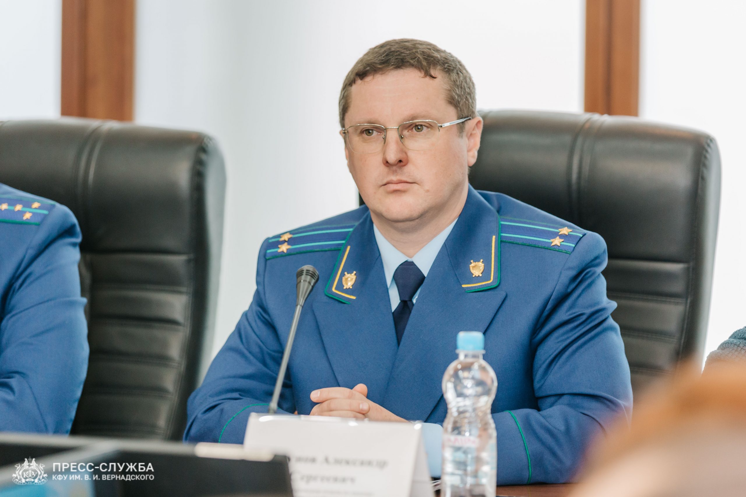Встречу со студентами провели старший прокурор отдела по надзору за соблюдением прав и свобод граждан управления по надзору за исполнением федерального законодательства Прокуратуры Республики Крым Александр Логунов и прокурор отдела по надзору за процессуальной деятельностью органов следствия МВД по Республике Крым управления по надзору за уголовно-процессуальной и оперативно-розыскной деятельностью Прокуратуры Республики Крым Александр Кулабухов.