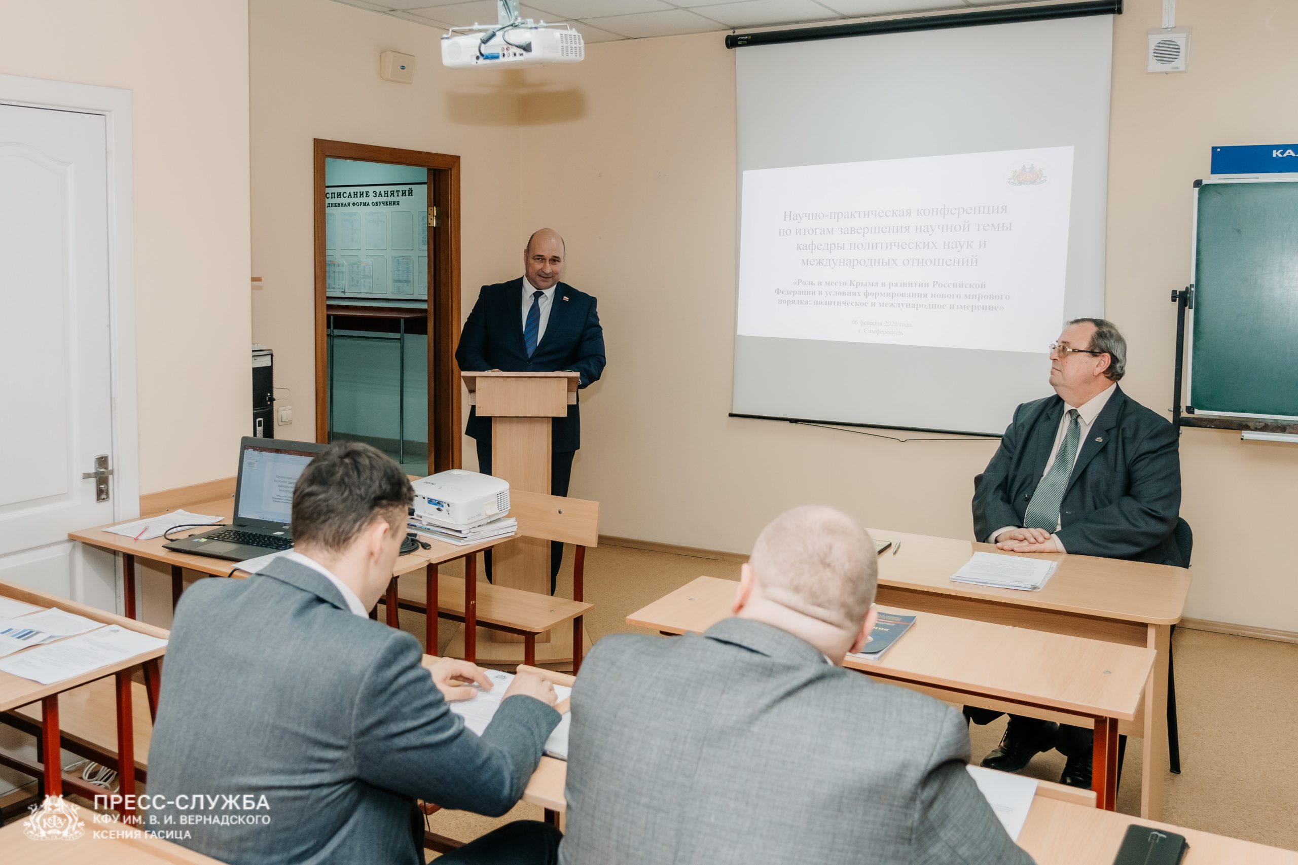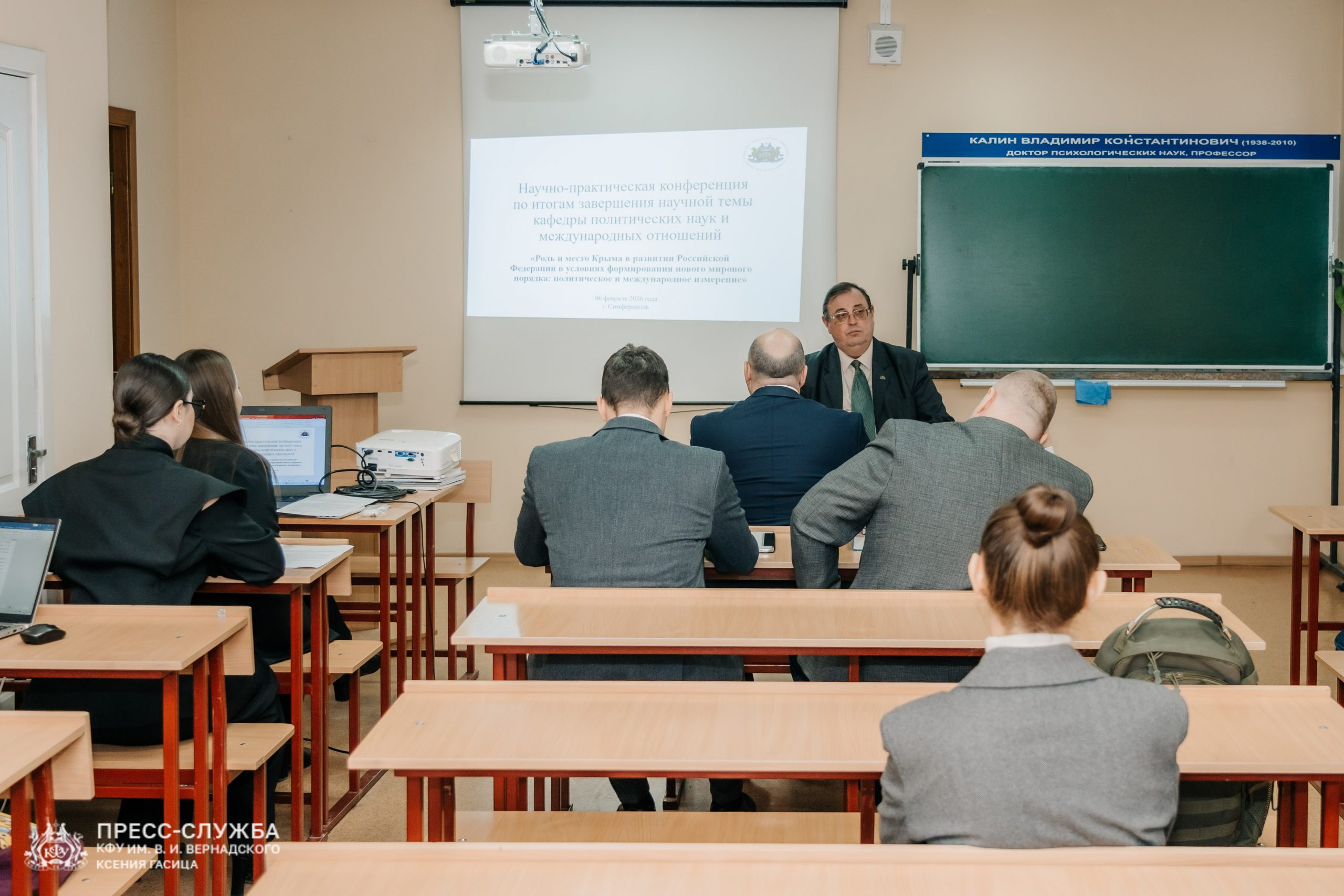В Крымском федеральном университете прошла научно-практическая конференция по итогам завершения научной темы «Роль и место Крыма в развитии Российской Федерации в условиях формирования нового мирового порядка: политическое и международное измерения». Авторами работы выступила кафедра политических наук и международных отношений Таврической академии КФУ. Встречу также посетил Председатель Законодательного собрания города Севастополя Владимир Немцев.