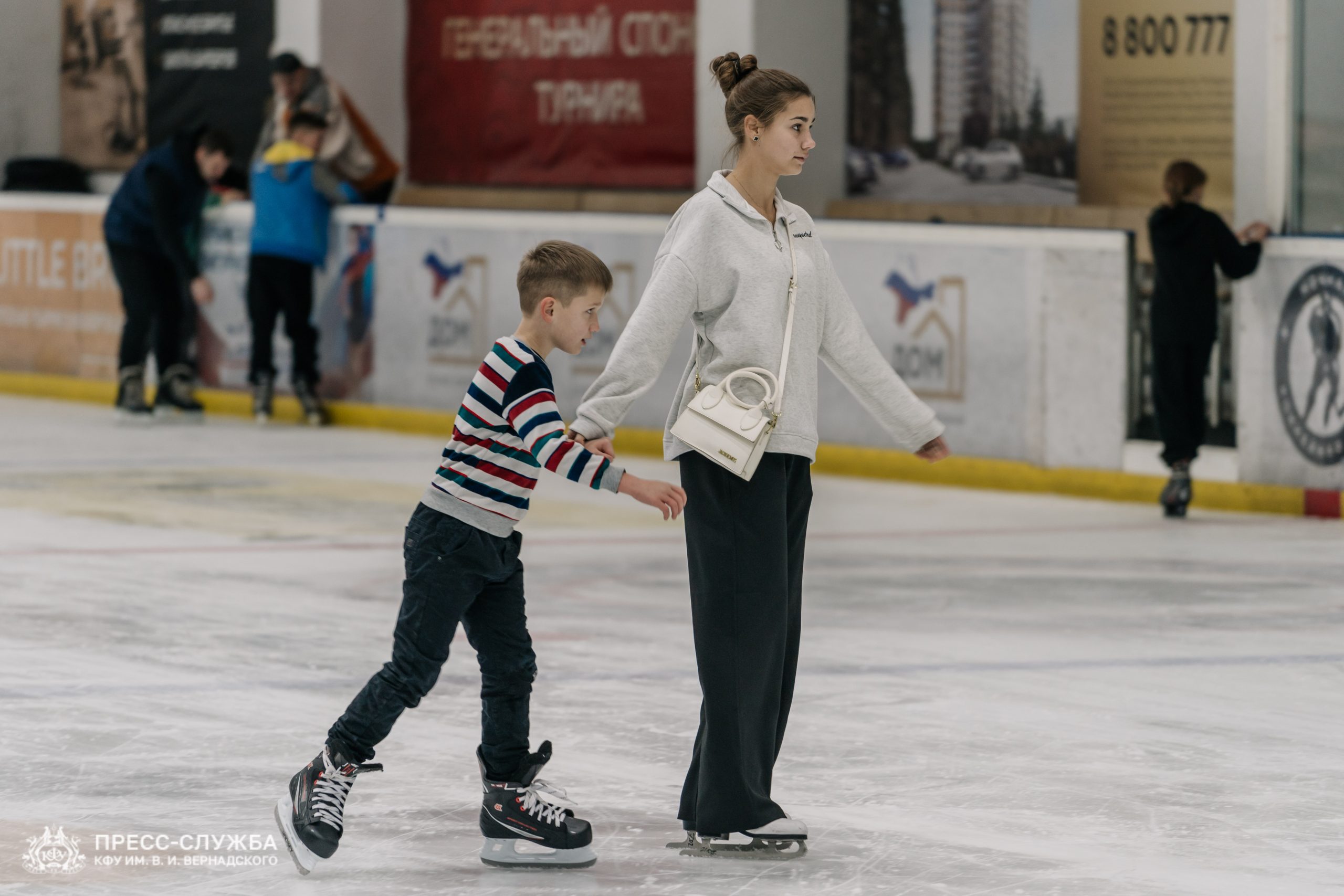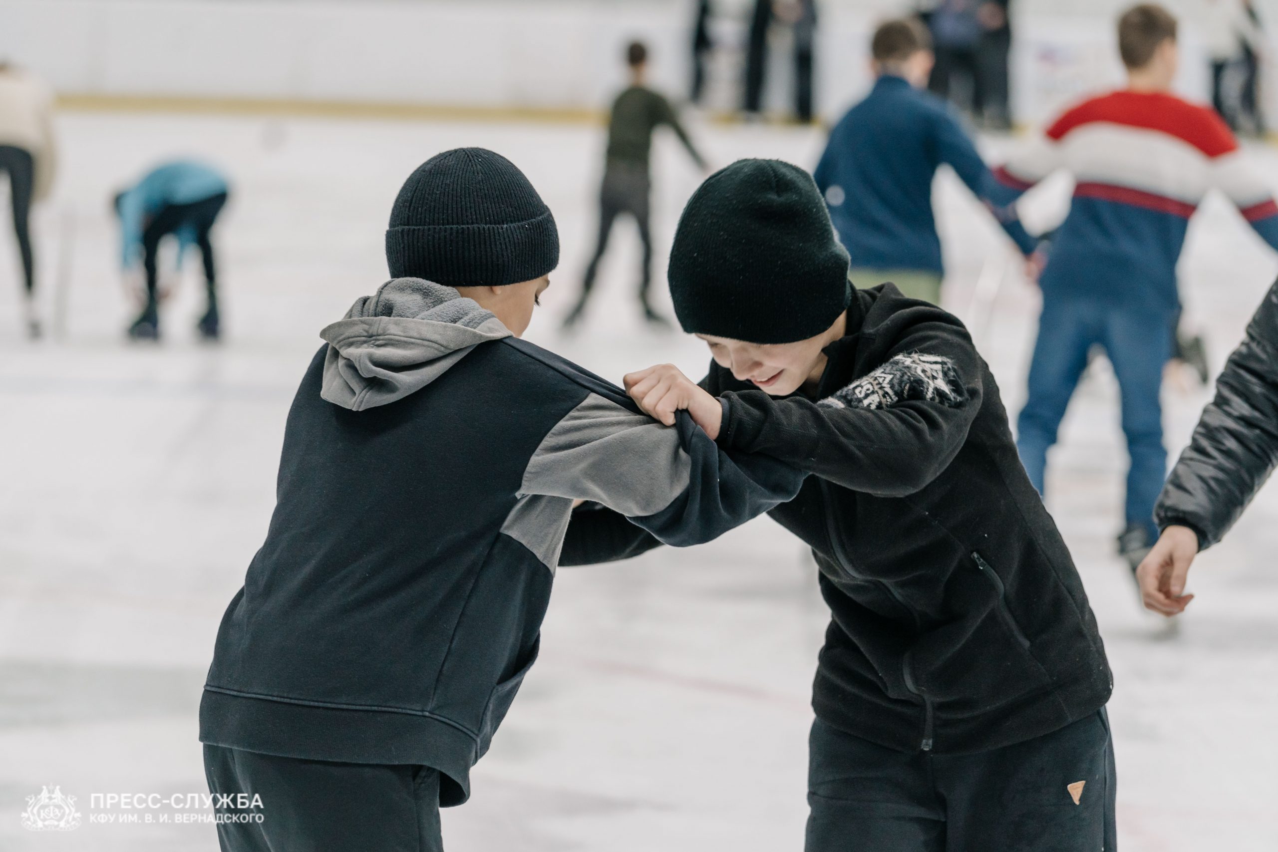 Праздник прошёл в два этапа. Первая часть объединила студентов колледжей и школьников со всего Крыма. Участники получили сладкие подарки и возможность покататься на коньках.