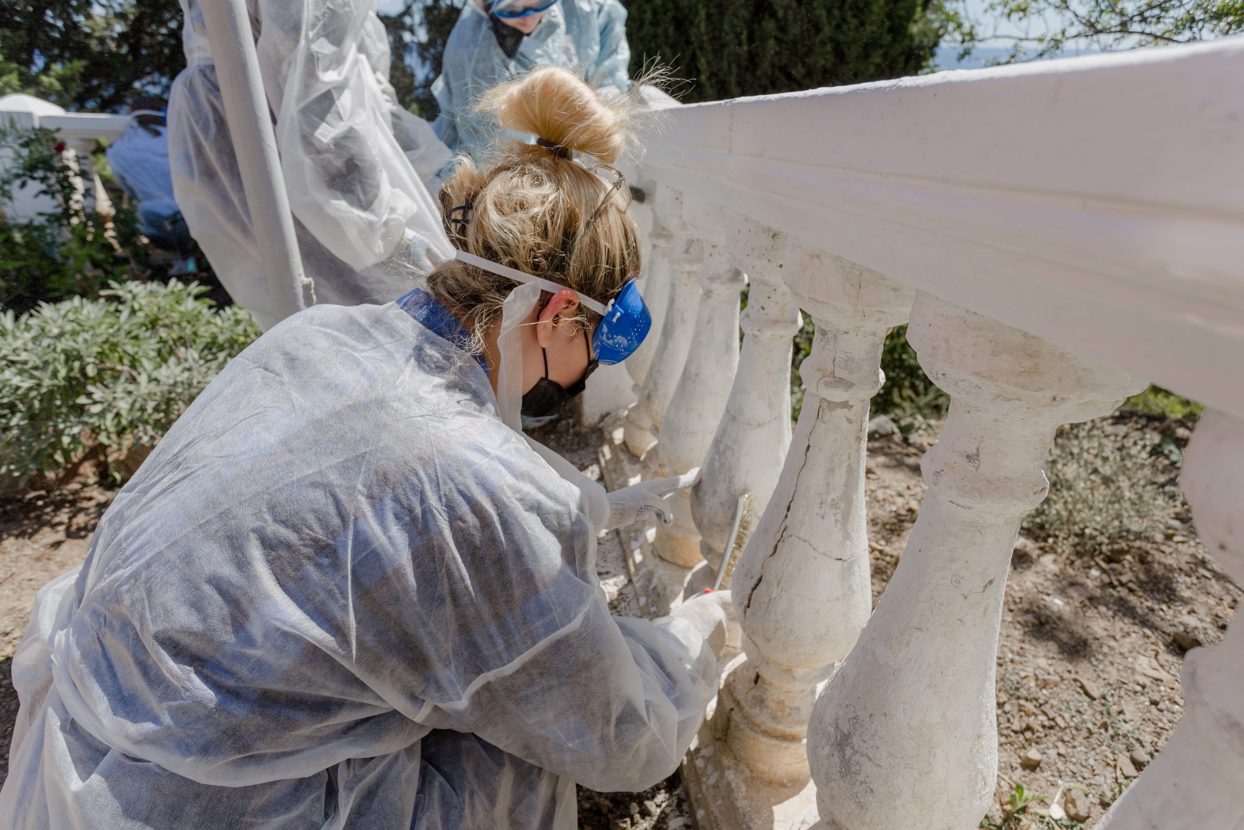 Практические занятия проводятся профессиональными реставраторами. Руководитель реставрационной компании ООО «Строй-искусство», председатель регионального отделения Союза реставраторов России, член Научно-методического совета Министерства культуры Республики Крым Дмитрий Рудницкий провёл занятие, посвященное работам по обработке поверхности из камня. Под его руководством слушатели сделали поверхностную очистку конструкций памятника от загрязнений; очистку конструкций памятника; провели заделку трещин, выравнивание поверхности, зачистку; грунтование перед окраской; подготовку основания и окрашивание поверхности.