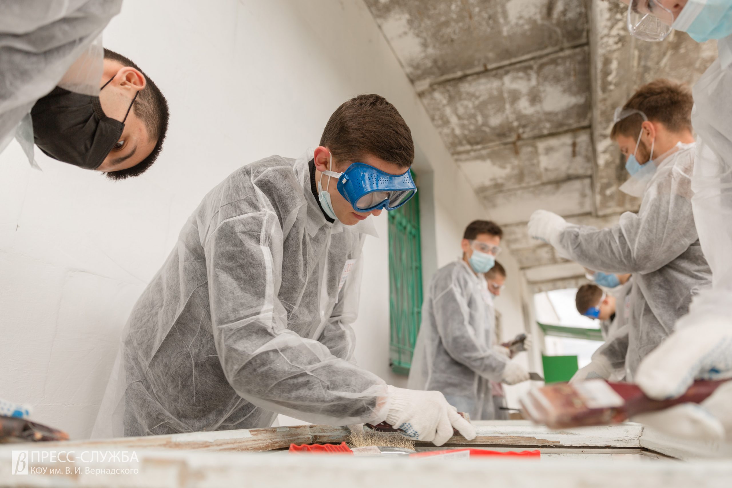 На первых занятиях слушатели школы провели работы по первичной реставрации каменных балюстрад, оконных рам и кованых решеток под руководством специалиста Сергея Ильченко.