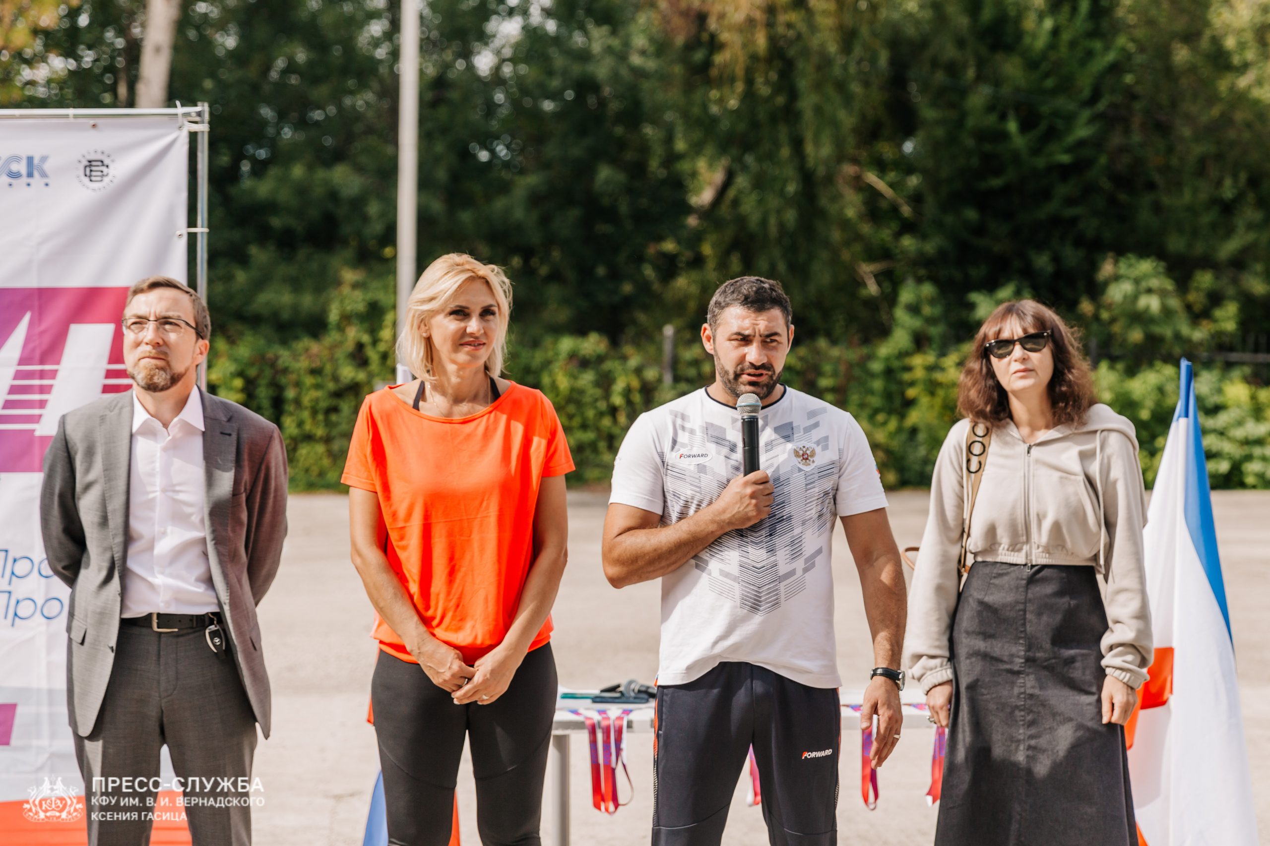 «Нам очень повезло, потому что те студенты, которые сейчас обучаются в Крымском федеральном университете – большие активисты в занятиях спорта. Все, кто на нашей кафедре работает – профессиональные спортсмены, и каждое занятие по физической культуре у нас проходит в шутливой форме, игровой форме. Мы заинтересовываем наших студентов заниматься спортом, поэтому, когда было предложено ребятам пробежать эстафету, у нас очень большое количество согласилось, и все приняли участие. На каждом занятии я всегда им объясняю, что нужно рисковать и пробовать, и они именно сюда пришли попробовать, у них получилось. Некоторые из них даже попали в полуфинал, показали очень высокие результаты, мы не ожидали, скажу честно. Поэтому мы сами поднялись духом от того, что наши ребята показывают хорошие результаты на наших стадионах, даже первые курсы», – отметила доцент кафедры физической культуры и спорта Людмила Блонская.