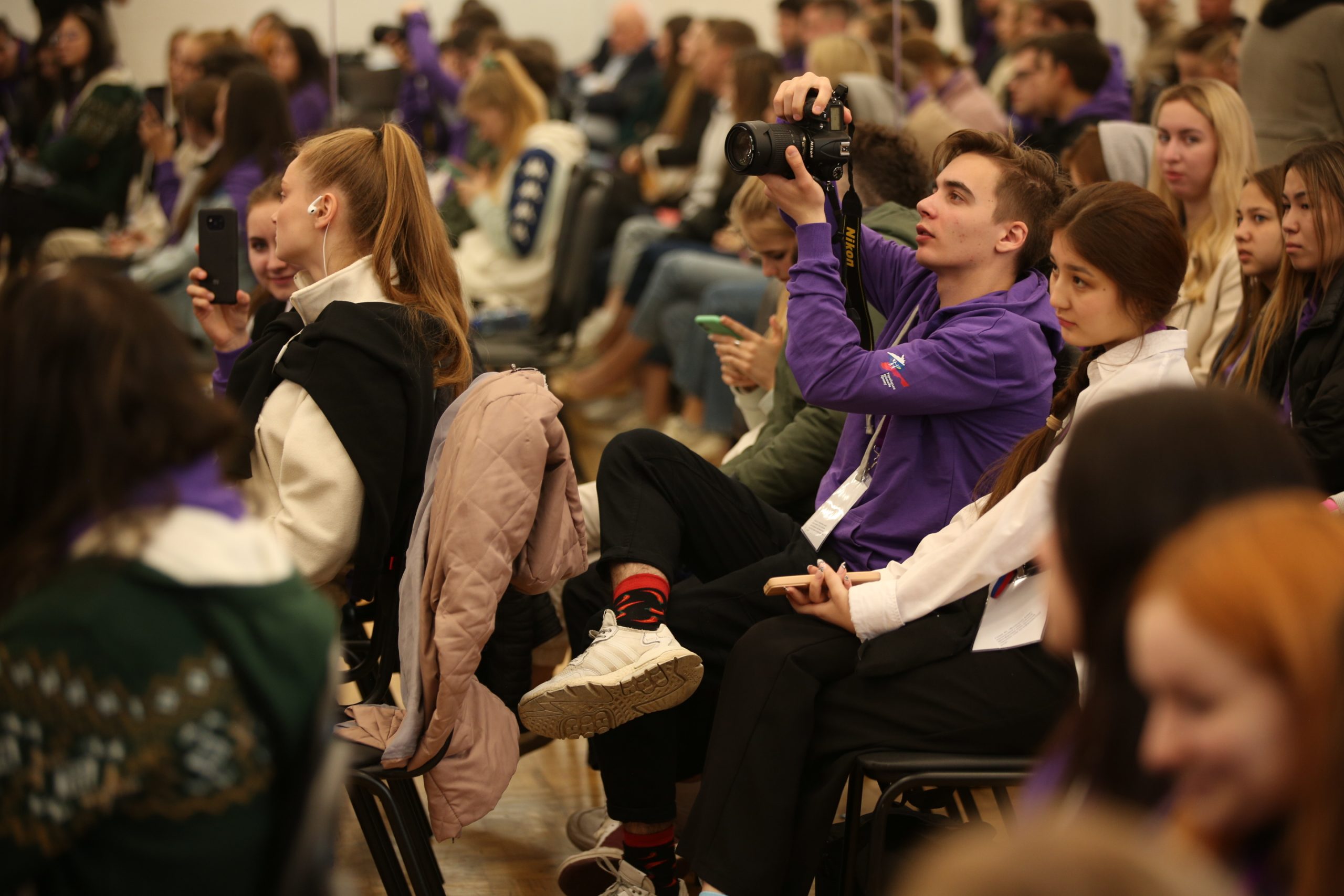 С участниками форума был организован патриотический флешмоб в поддержку Вооружённых Сил и Президента Российской Федерации.