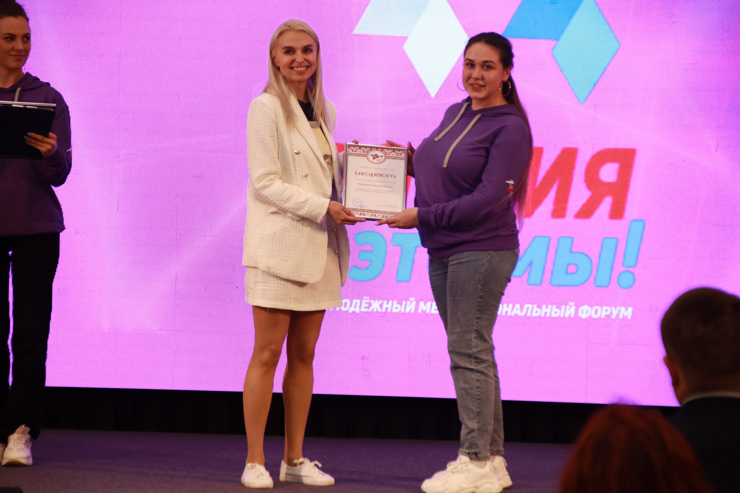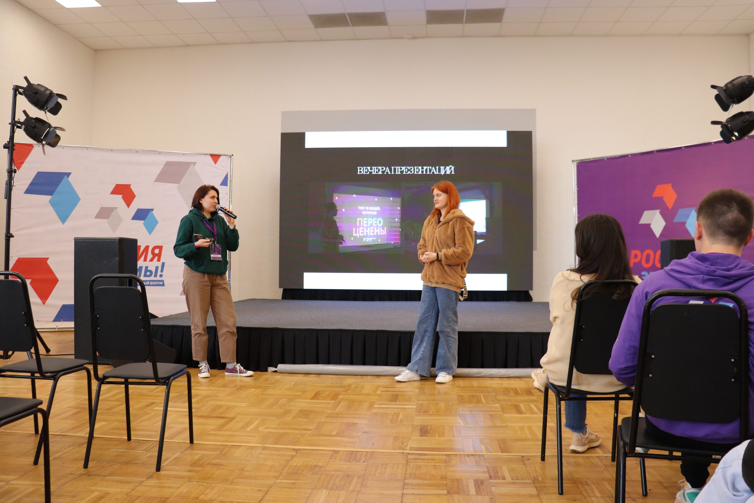 В первый день форума презентацию социально-проектной деятельности Крымского федерального университета провела главный специалист департамента по социальной и воспитательной работе Галина Маркова, а о деятельности Института медиакоммуникаций, медиатехнологий и дизайна рассказали студентки 4 курса Анастасия Скалдина и Кристина Завацкая.