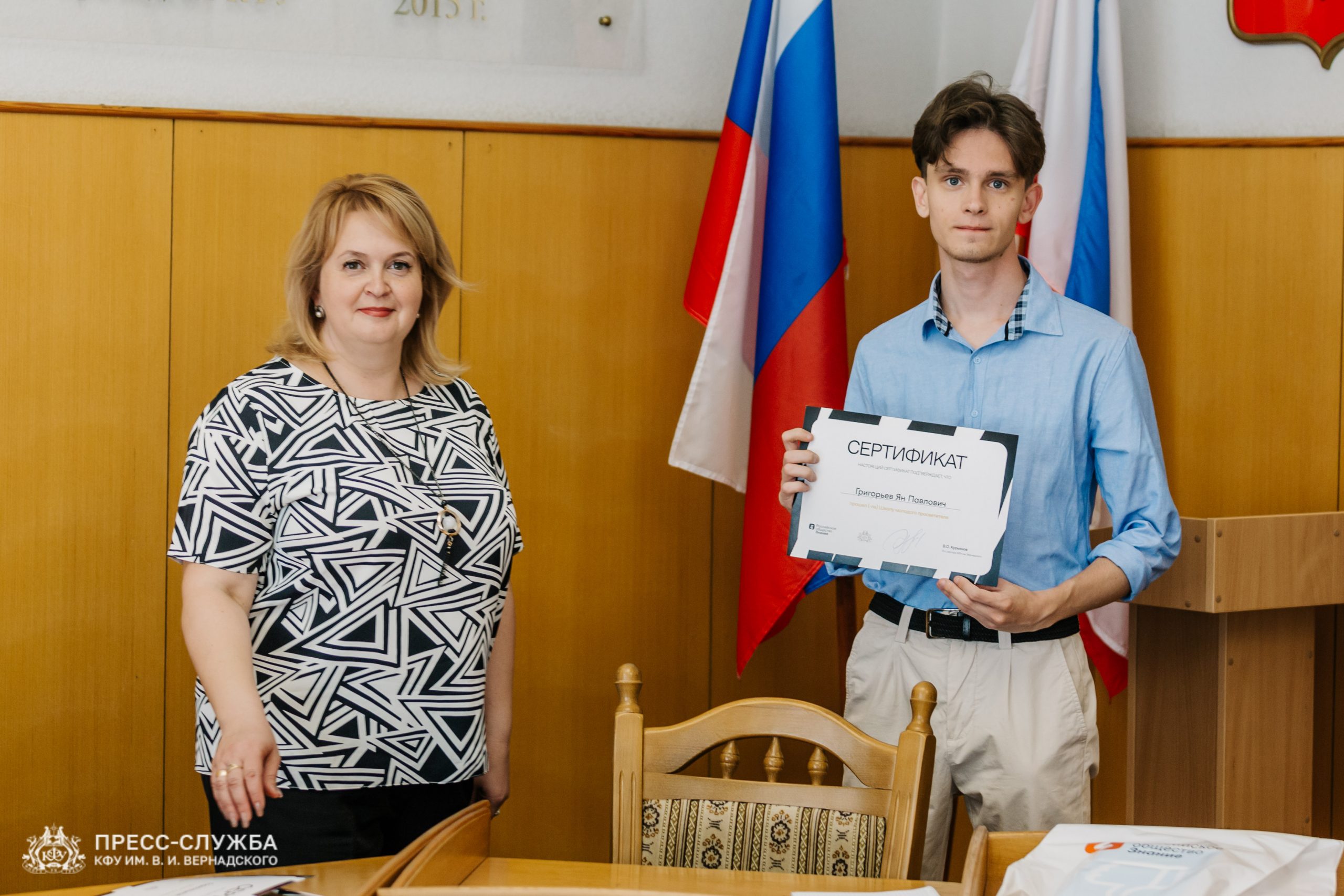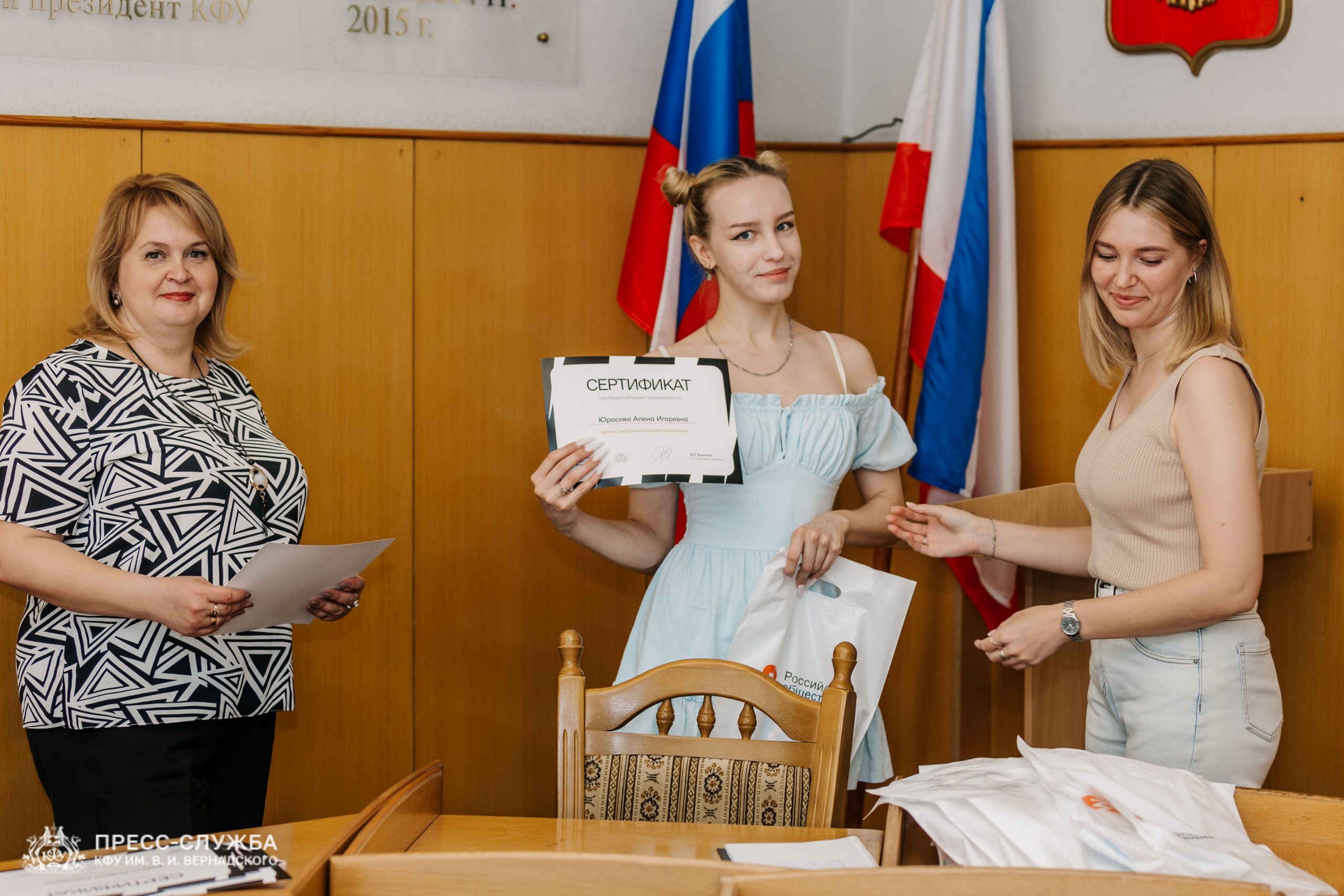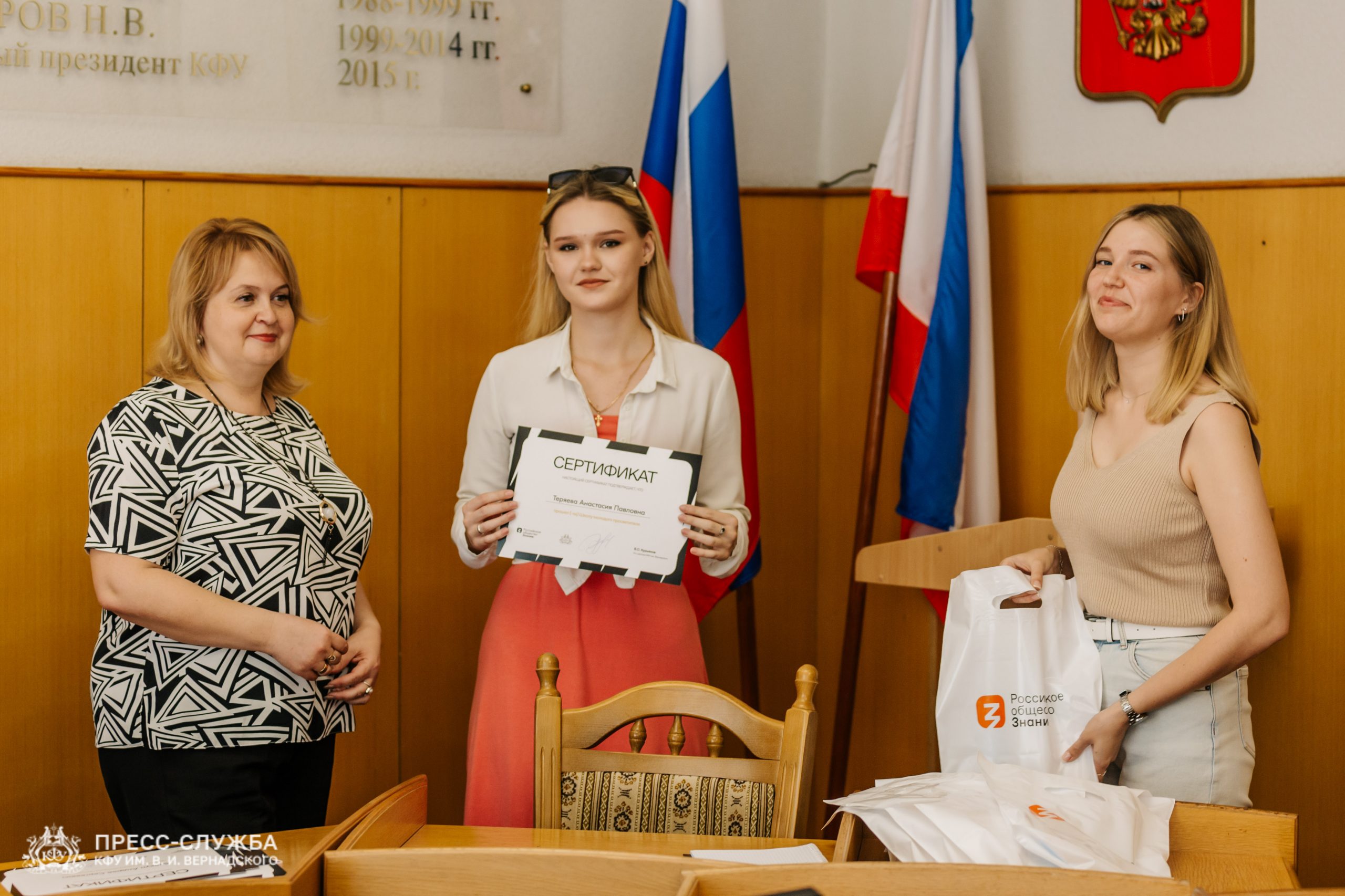 На площадке Крымского федерального университета им. В.И. Вернадского студенты получили сертификаты об успешном прохождении образовательного интенсива в рамках форума «Школа молодого просветителя» от Российского общества «Знание».