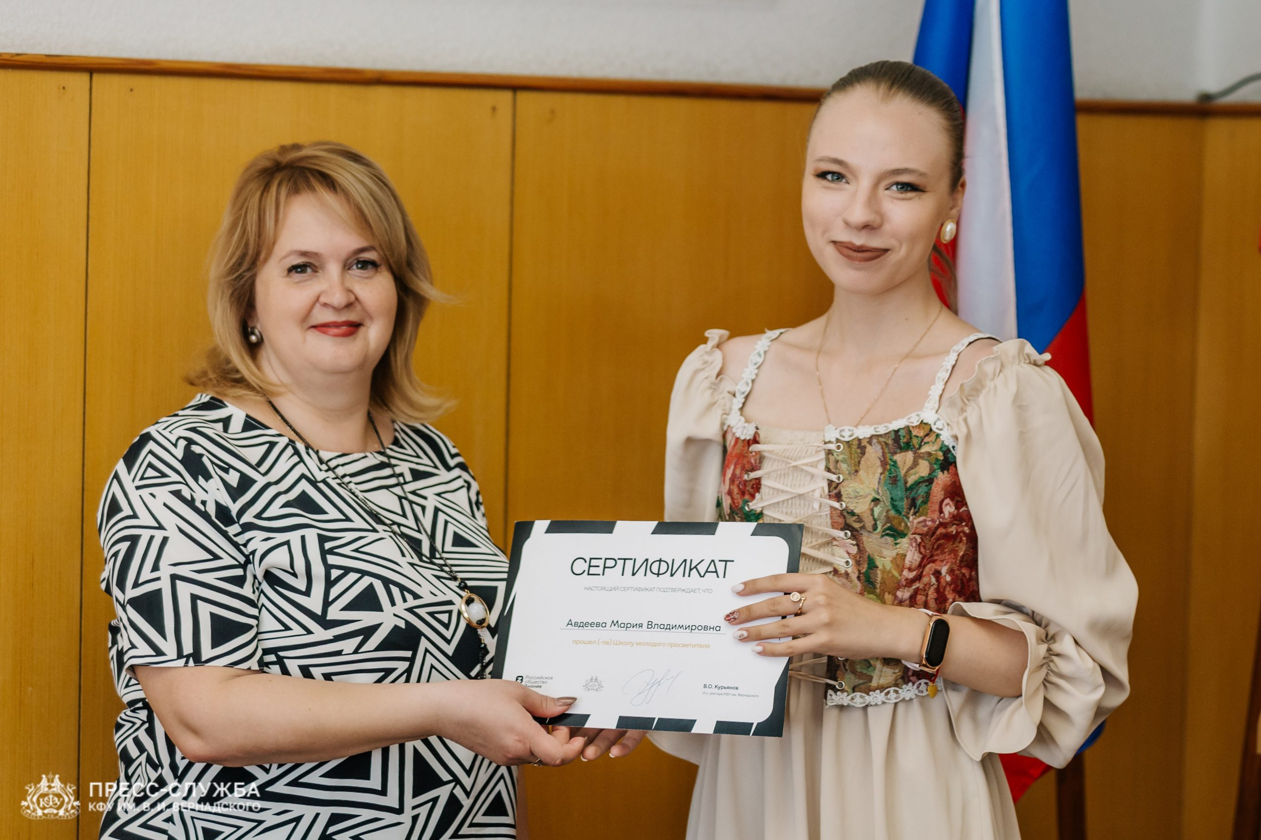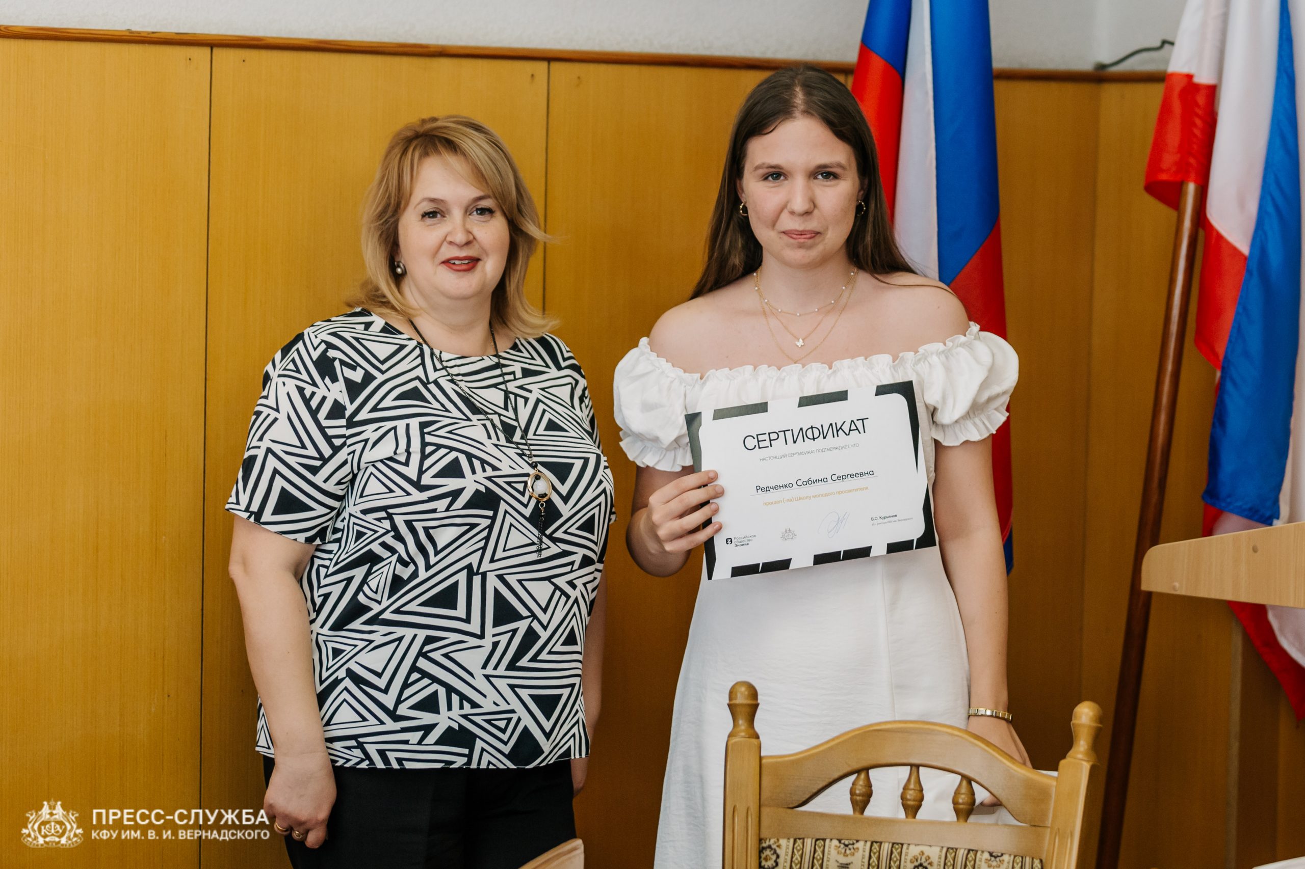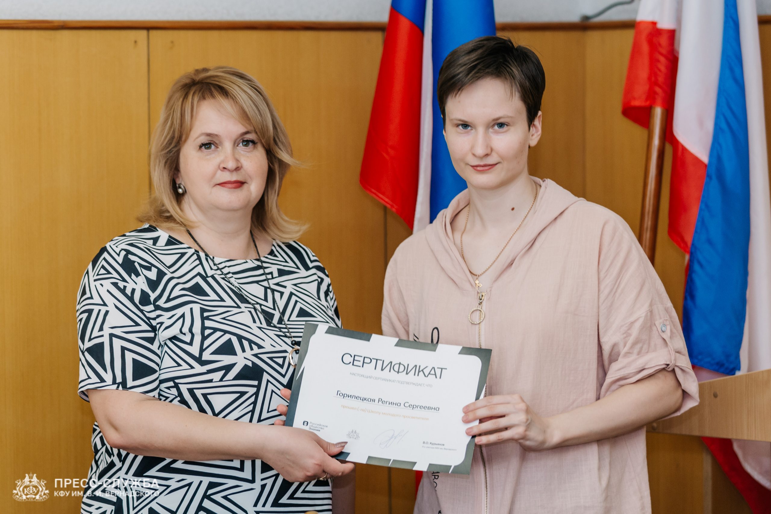 На площадке Крымского федерального университета им. В.И. Вернадского студенты получили сертификаты об успешном прохождении образовательного интенсива в рамках форума «Школа молодого просветителя» от Российского общества «Знание».