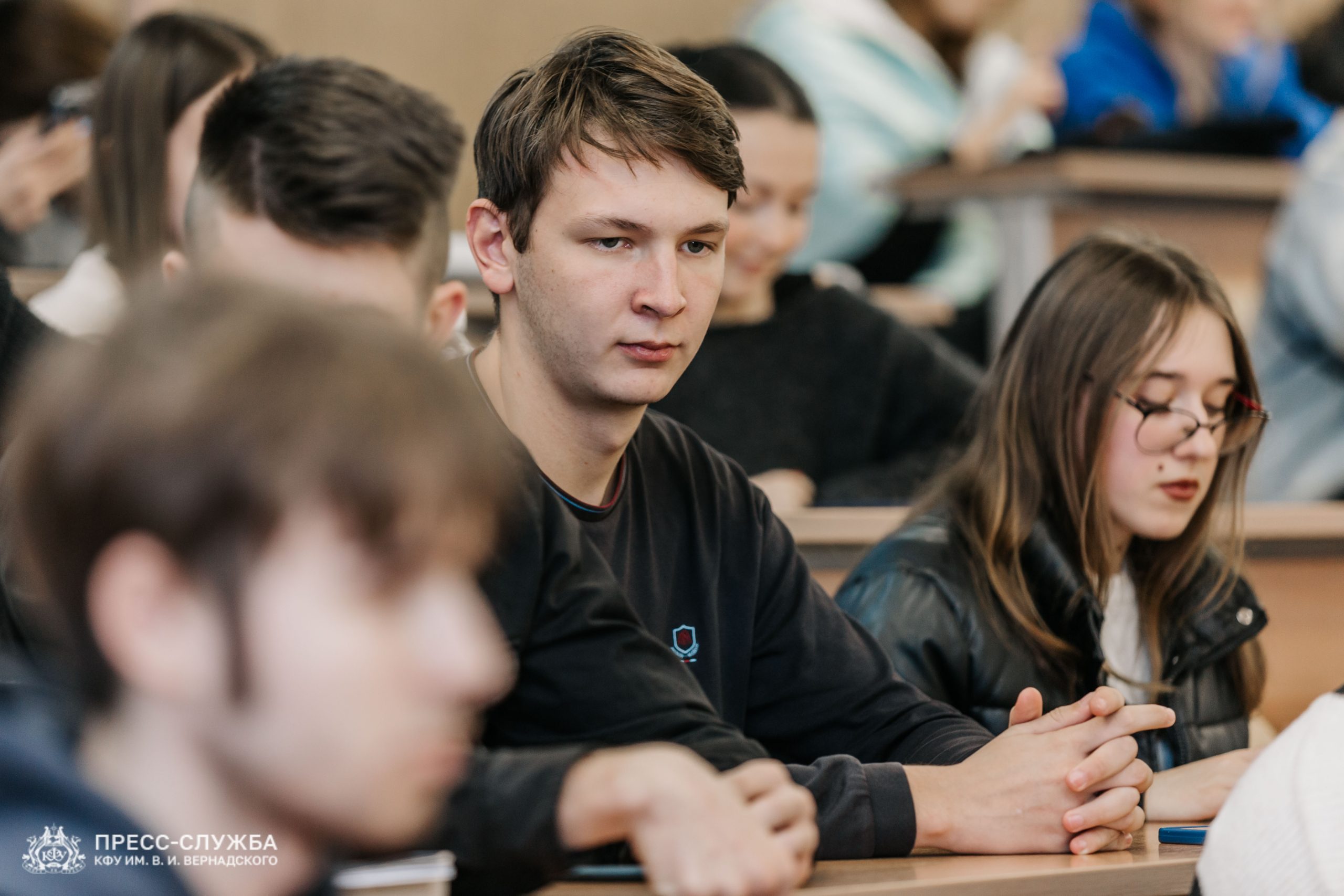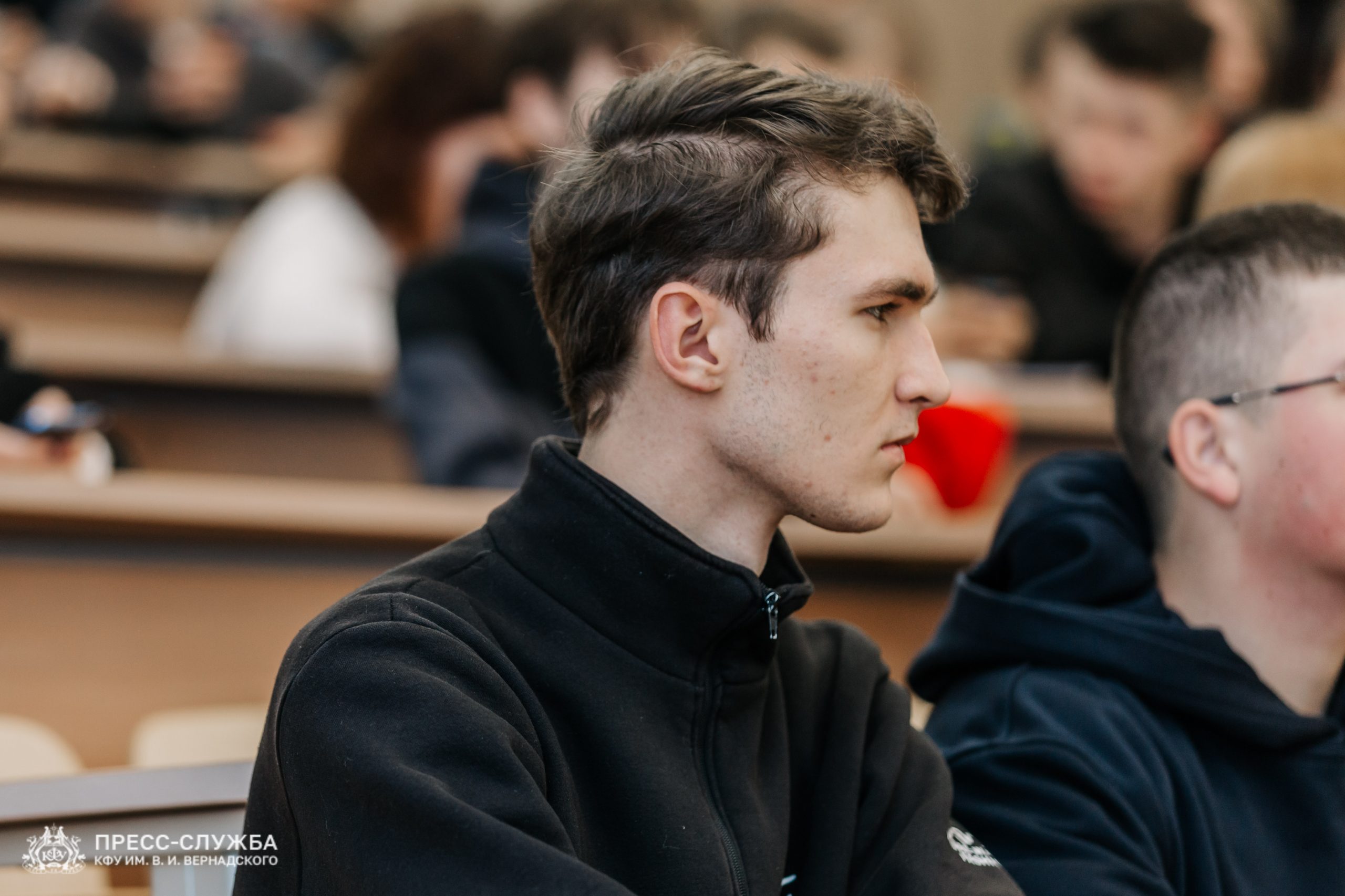 «Сегодня мы знакомим наших студентов с нашим студентом, который в первые дни специальной военной операции совершил подвиг. Мы с ним с 2023 года стремимся выйти на более откровенный формат. Юрий будет вести диалог, как студент со студентами. Дело в том, что ребятам очень важно понимать, что события, связанные со специальной военной операцией, не где-то далеко, они внутри каждого из нас», – поделился проректор по молодёжной политике КФУ Сергей Елькин.