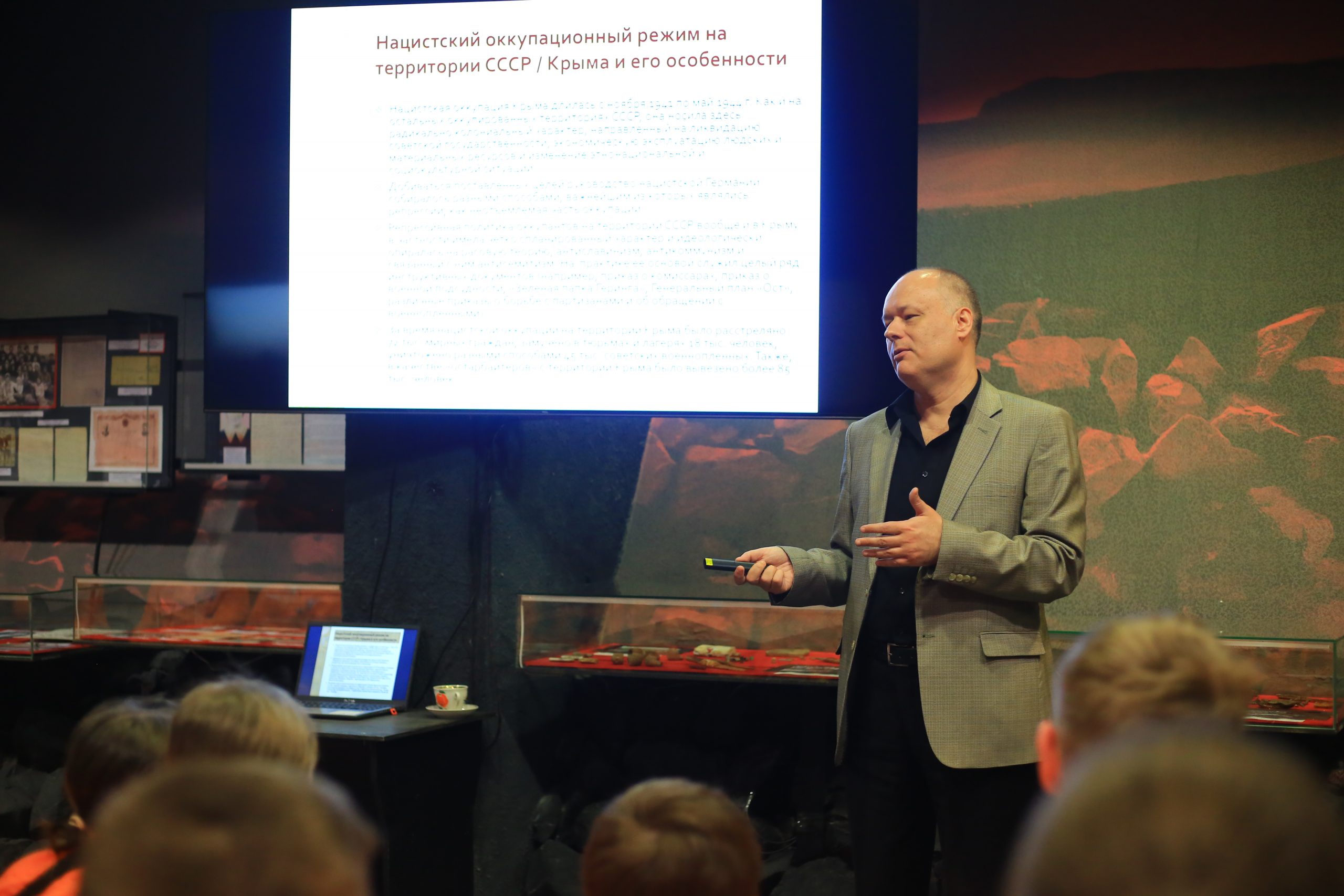 Лекция проходила на площадке Мемориала жертвам фашистской оккупации Крыма 1941–1944 гг. «Концлагерь “Красный”» и была приурочена ко Дню единых действий в память о геноциде советского народа нацистами и их пособниками в годы Великой Отечественной войны.