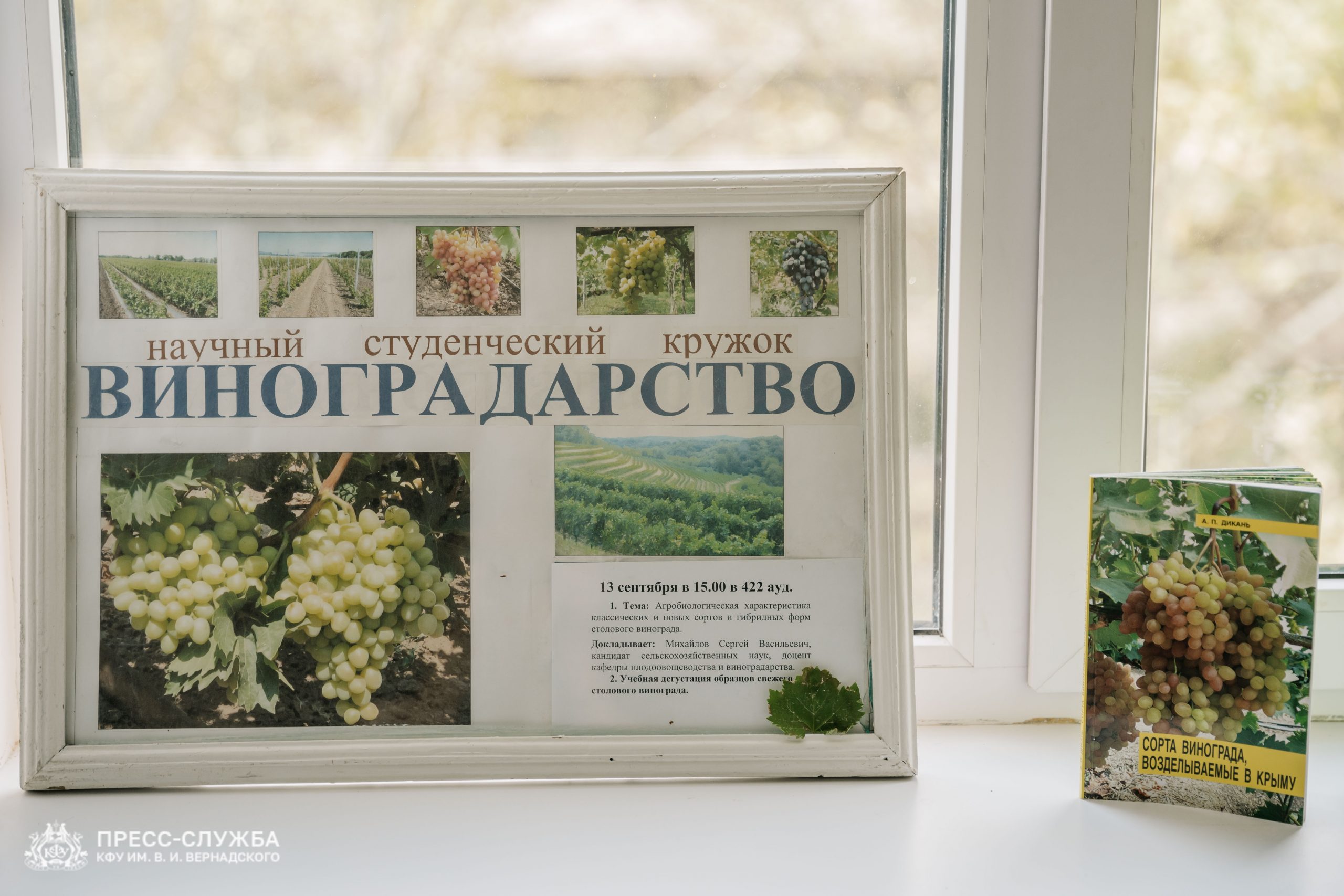 В Агротехнологической академии Крымского федерального университета прошло ежегодное заседание научного студенческого кружка «Виноградарство» по теме «Агробиологическая характеристика классических и новых сортов и гибридных форм столового винограда».