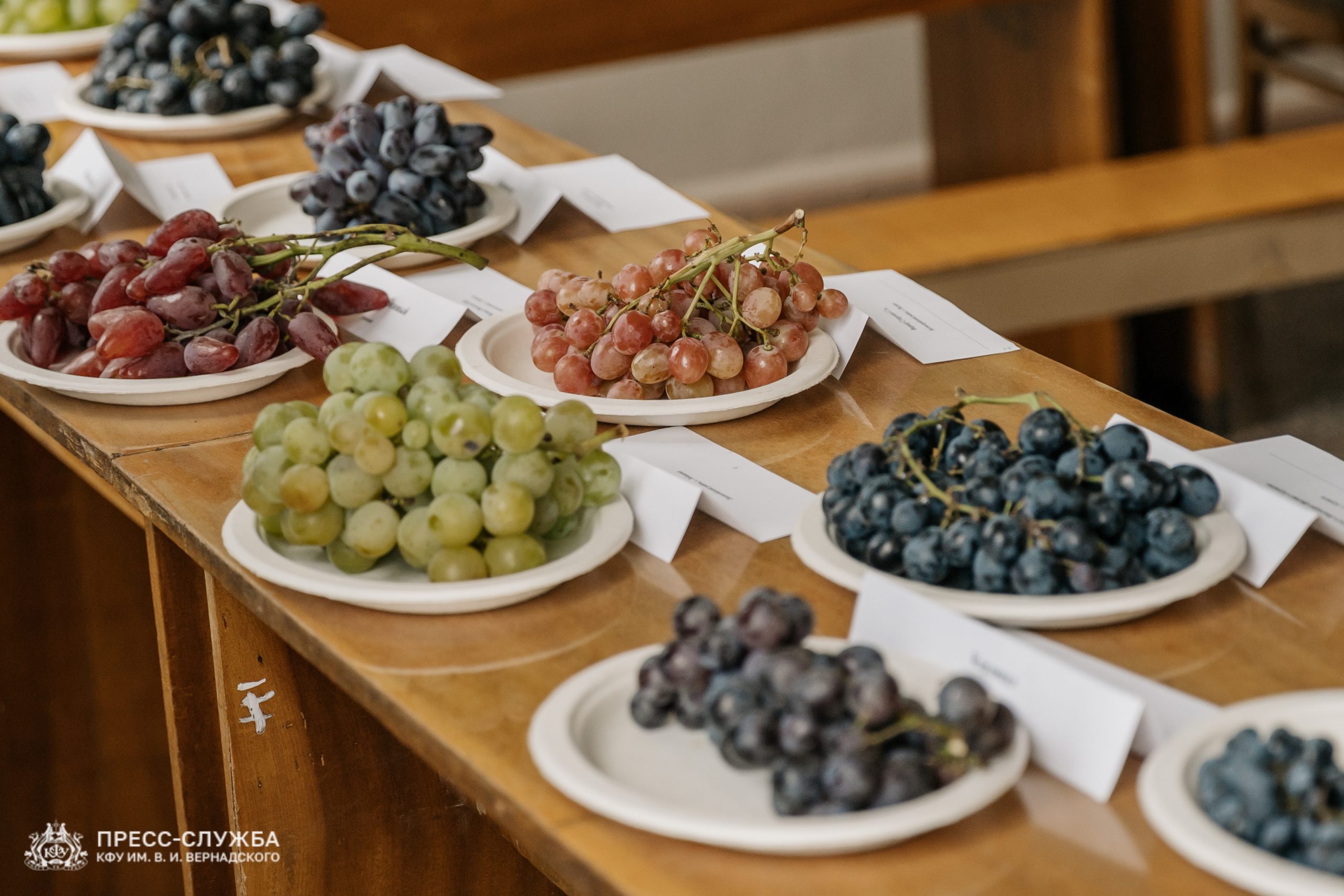 Для проведения заседания были отобраны лучшие сорта и гибридные формы столового винограда из разных районов Крыма, а также образцы из Запорожской области. Всего на выставке представлено более 30 сортов винограда различных сроков созревания.