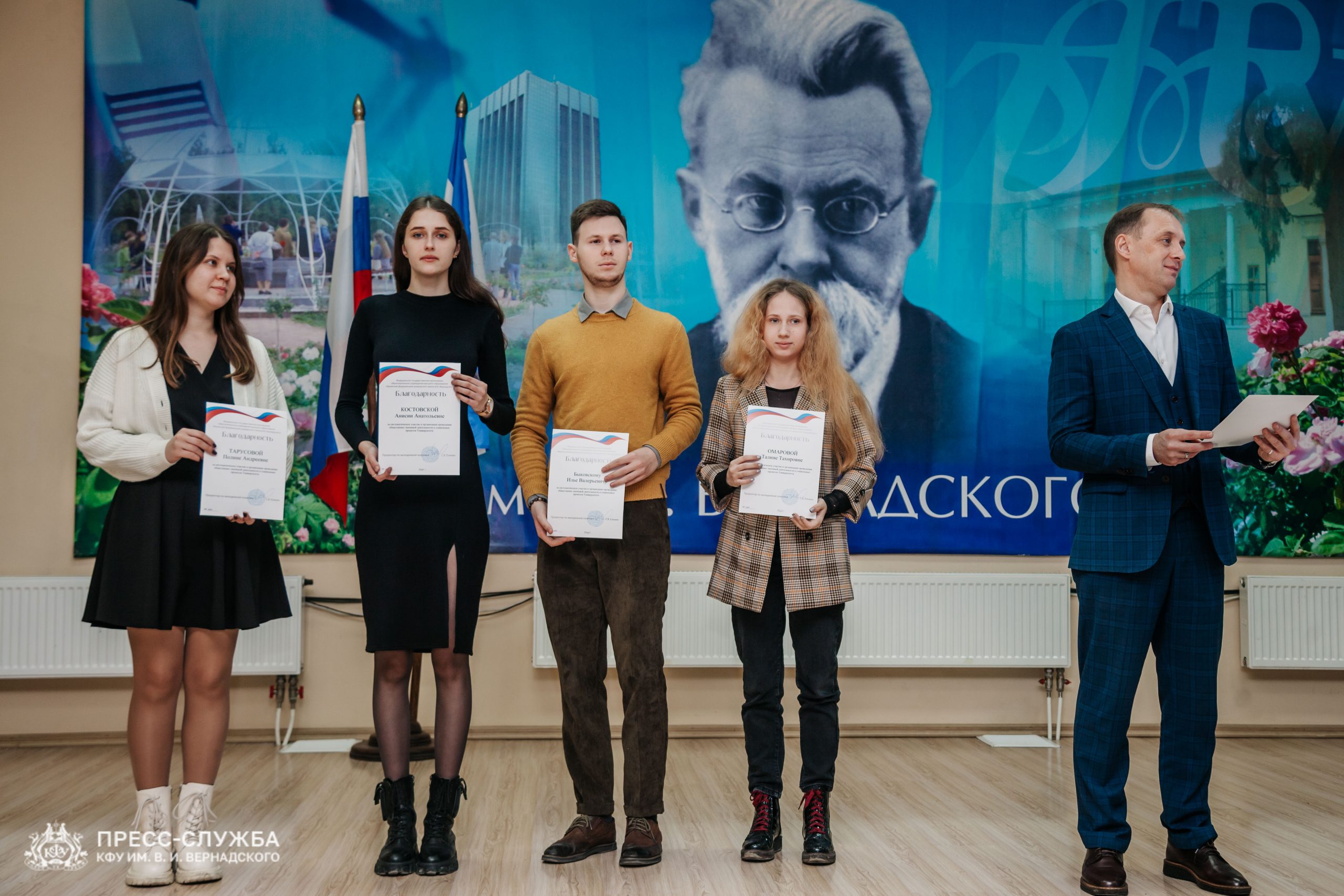 «Наши студенты принимают активное участие в добровольческой деятельности, без которой уже трудно представить жизнь и университет в целом. Сегодня мы хотим отметить самых активных участников этой нелегкой, но очень важной работы. В каждом структурном подразделении Крымского федерального университета есть такие люди, а это не только значительная сила, но и внутреннее чувство гордости за каждого из вас», – отметил первый проректор – проректор по международной деятельности и информационной политике КФУ Сергей Юрченко.