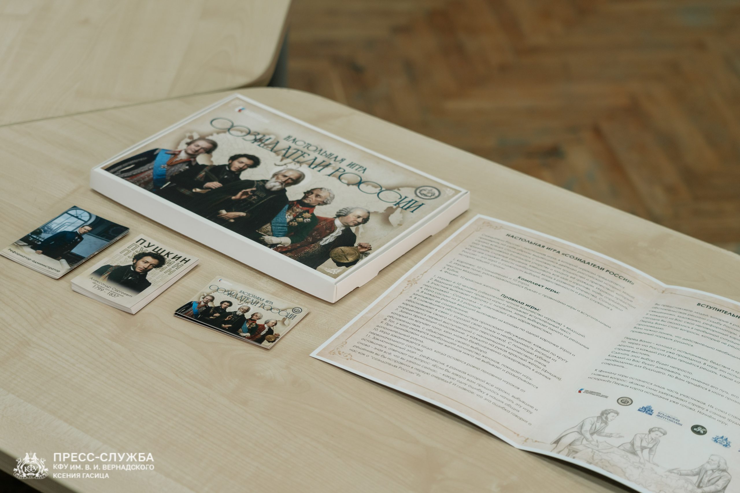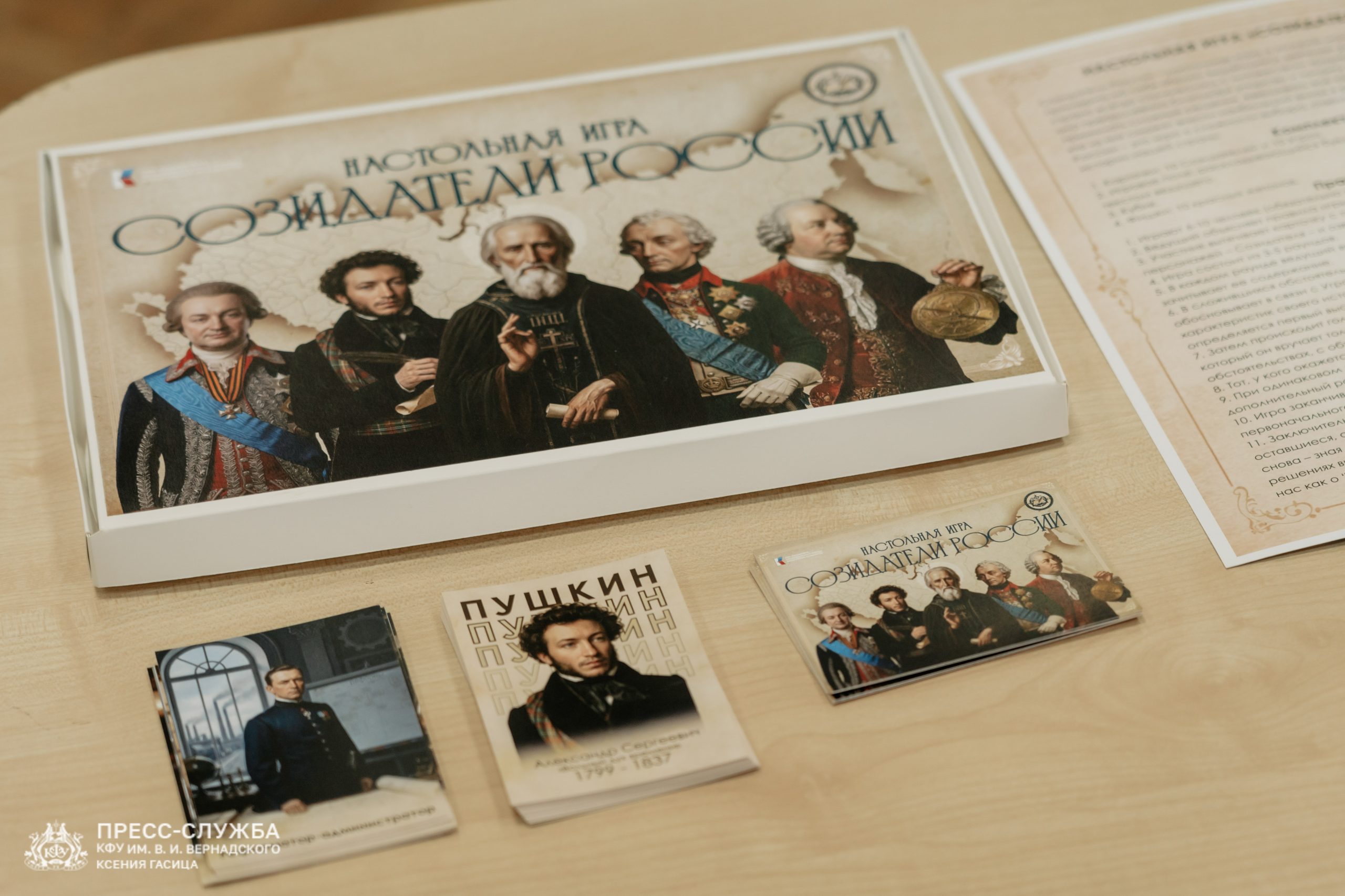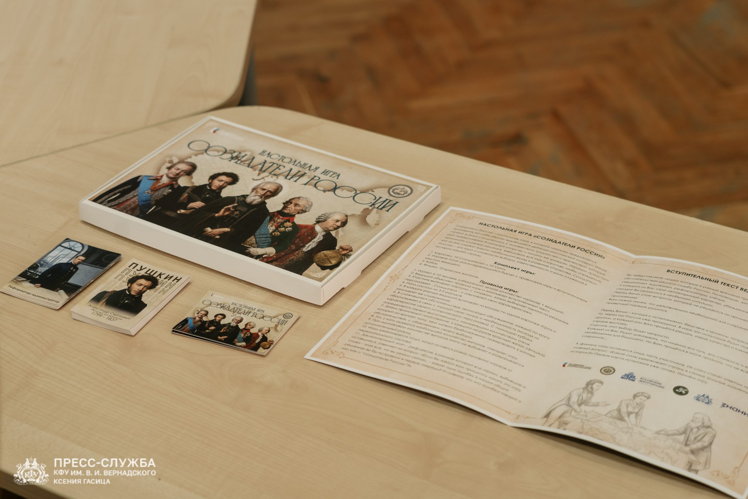 В Крымском федеральном университете состоялась презентация настольной игры «Созидатели России», в которой игрокам предлагается примерить на себя образы выдающихся деятелей российской истории. Игра разработана специалистами Крымского федерального университета им. В.И. Вернадского при поддержке Крымской митрополии.