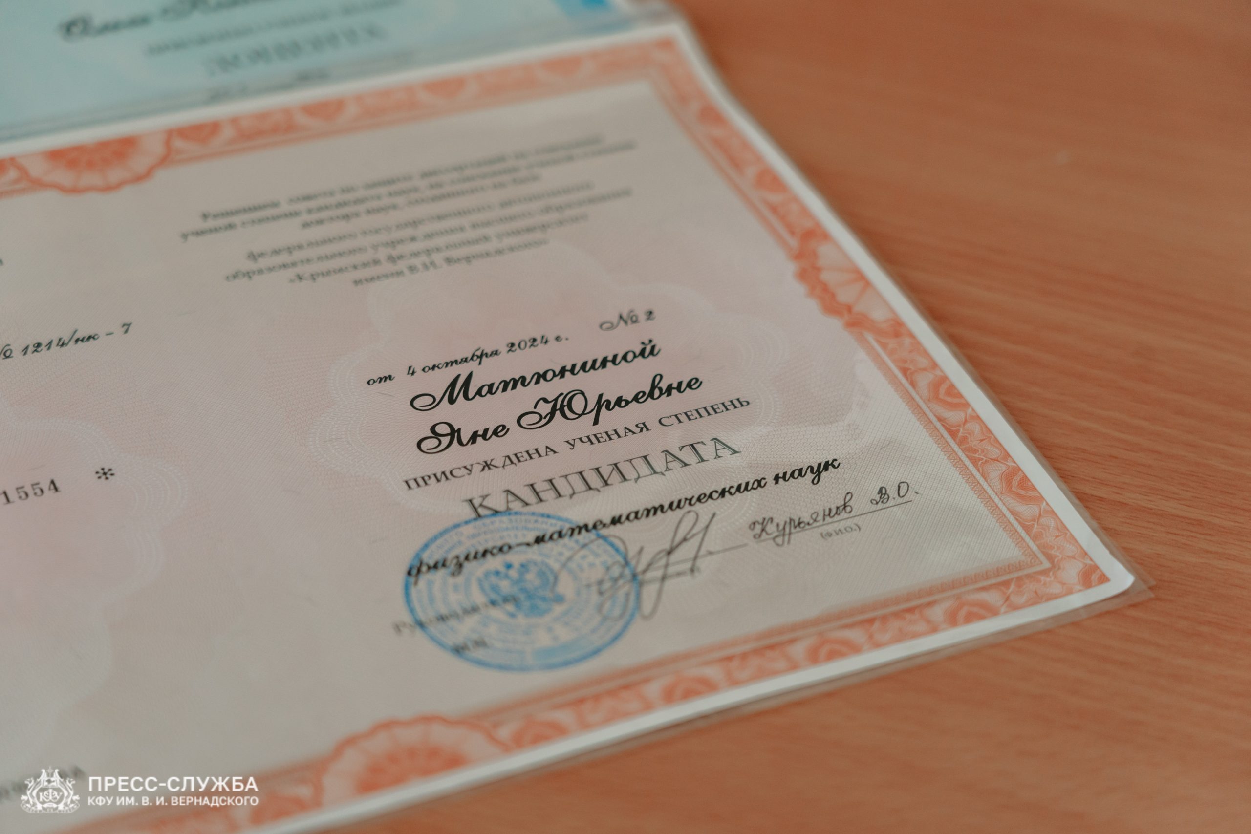 Приказом Министерства науки и высшего образования Российской Федерации присуждена ученая степень кандидата медицинских наук Ольге Карапетян, ученая степень кандидата физико-математических наук присуждена Яне Матюниной.