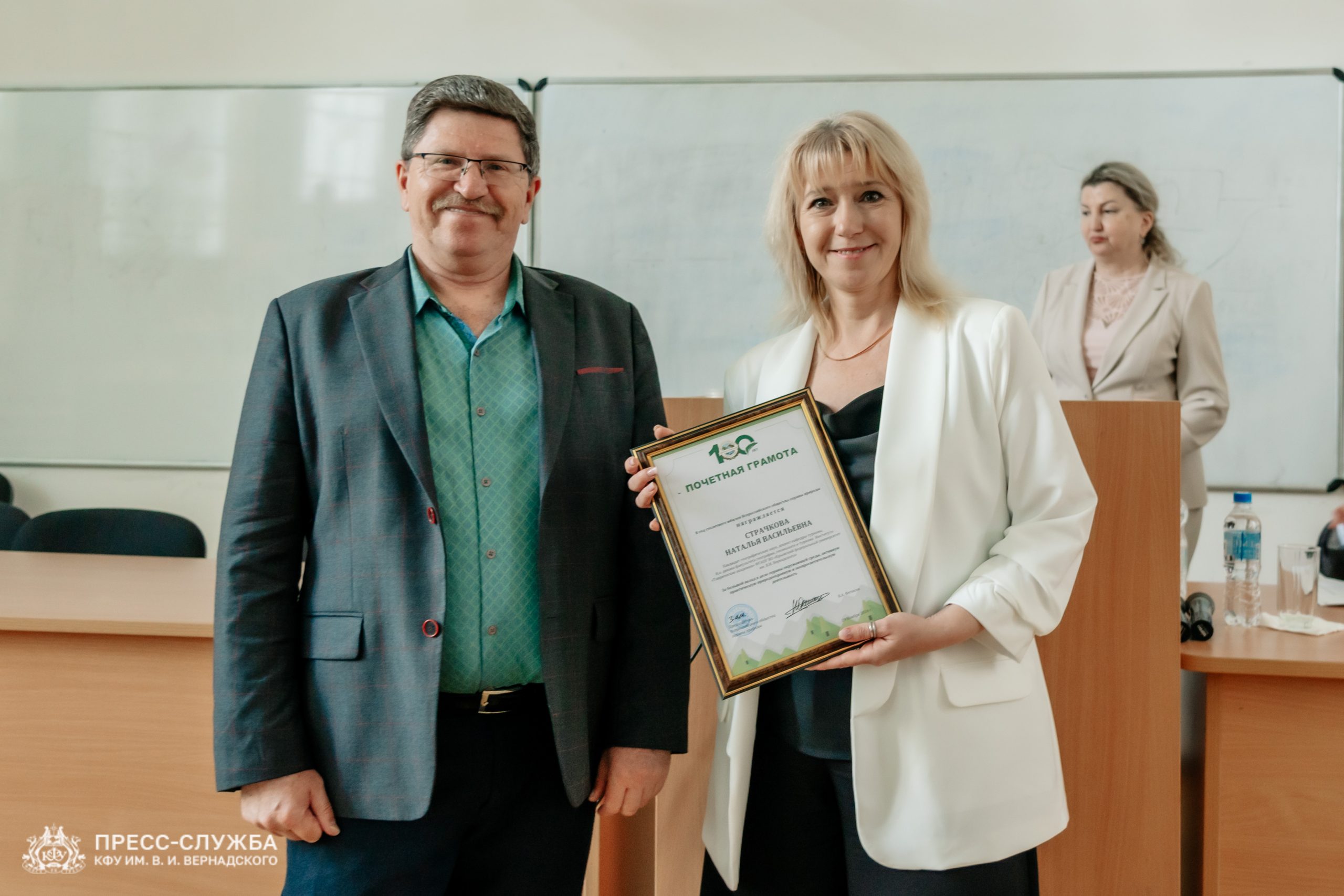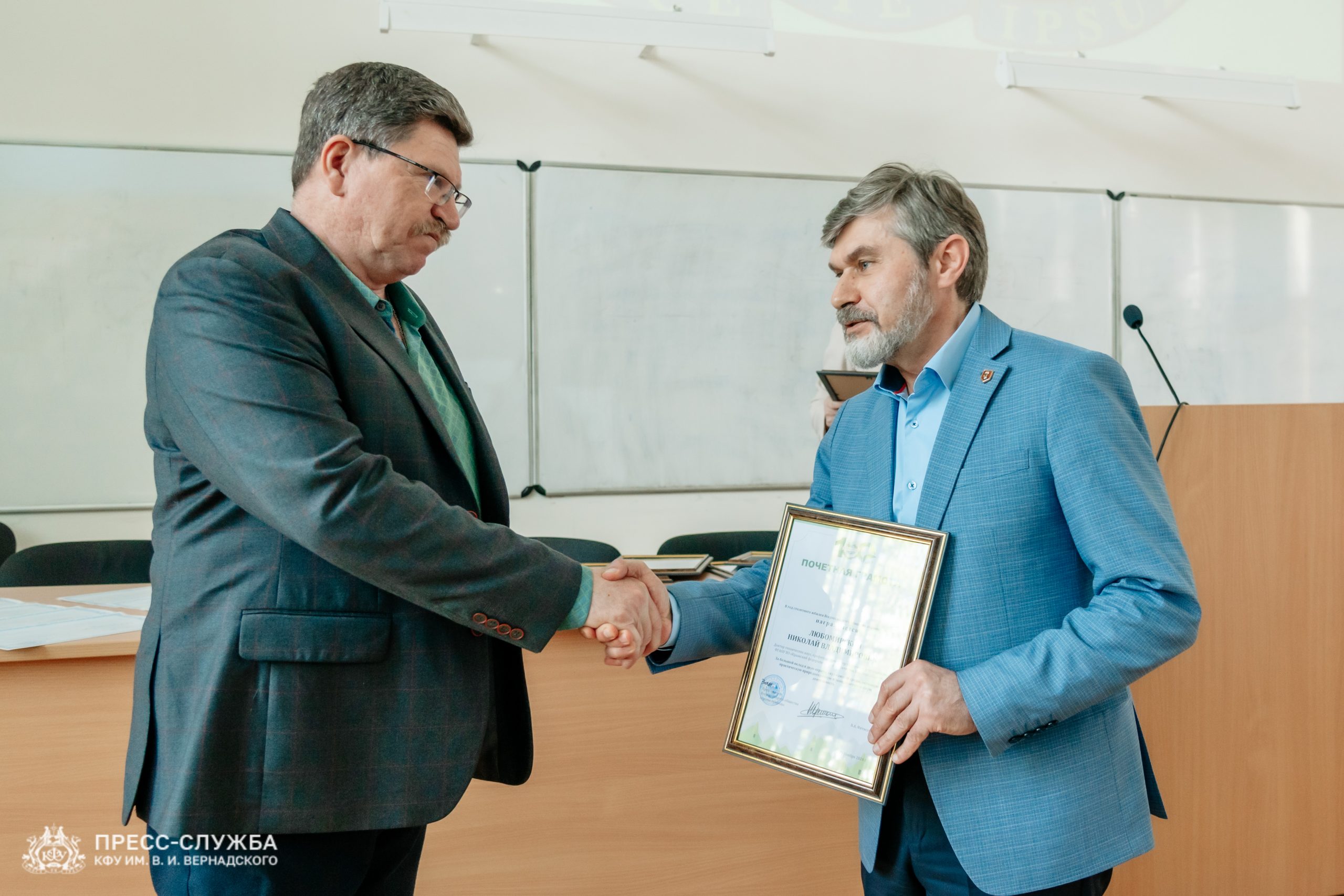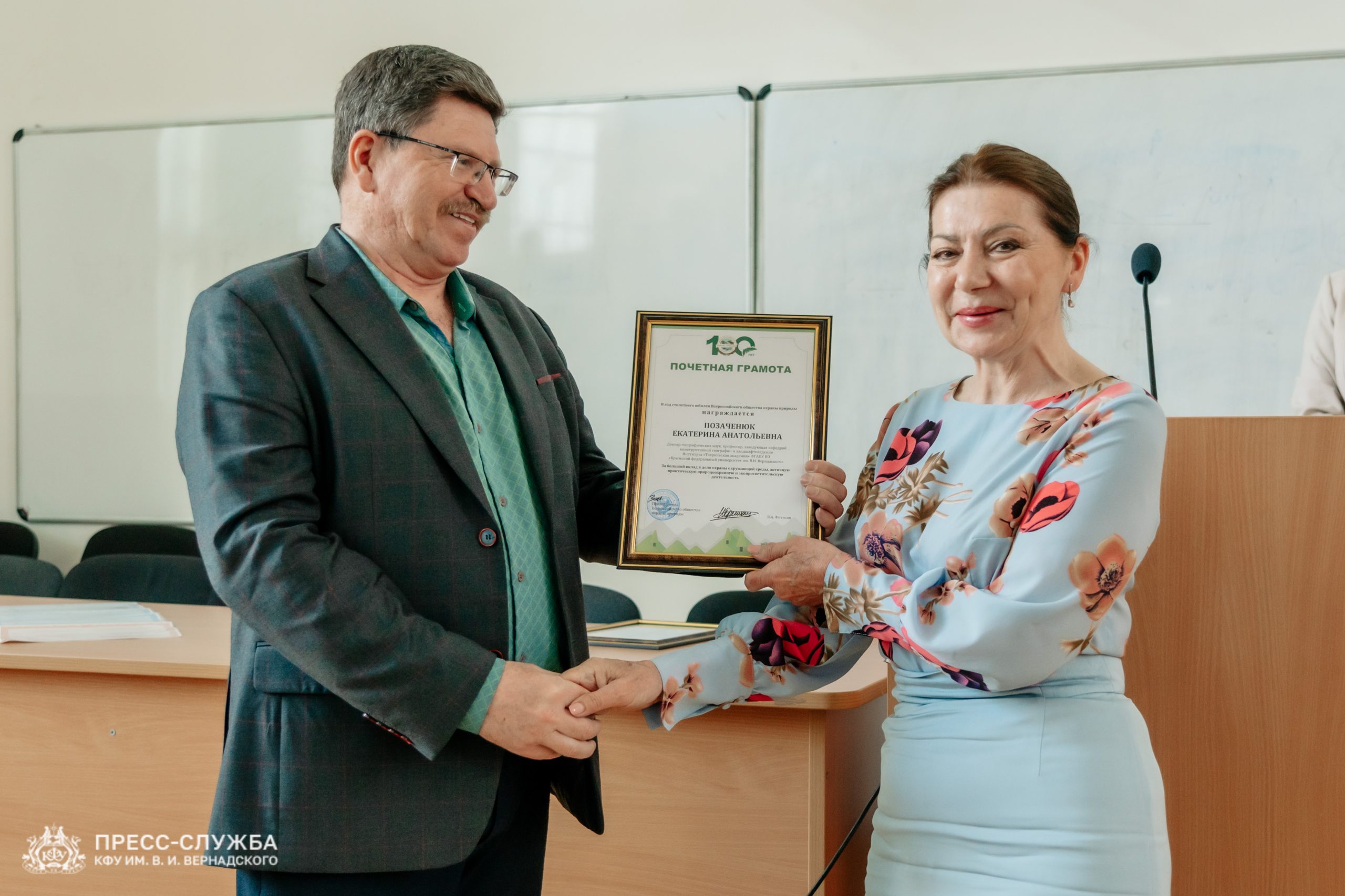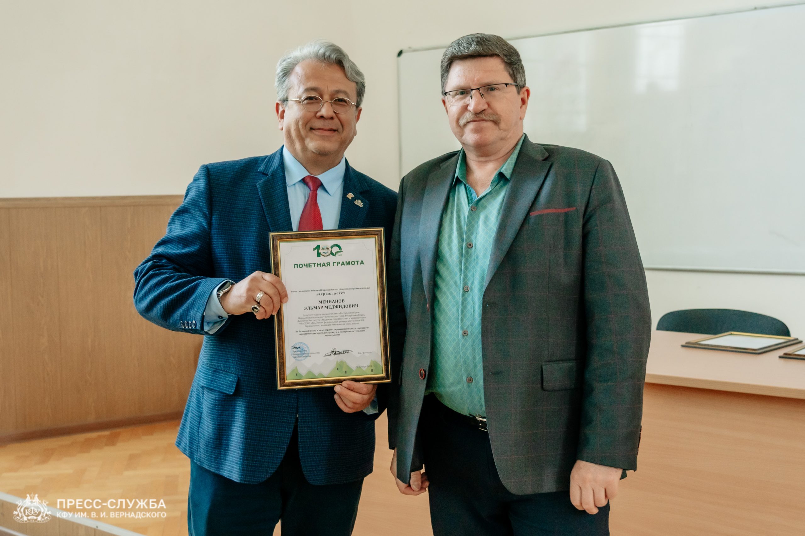 Крымский федеральный университет провел заседание Ученого совета, начавшееся с торжественных награждений сотрудников. Член Общественной палаты Крыма Лев Григорьев вручил грамоты Всероссийского общества охраны природы за вклад в экологическую деятельность в год столетия организации.