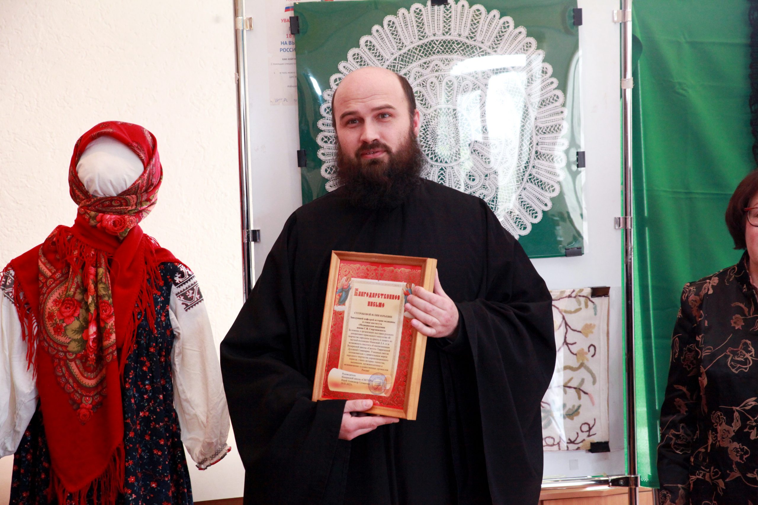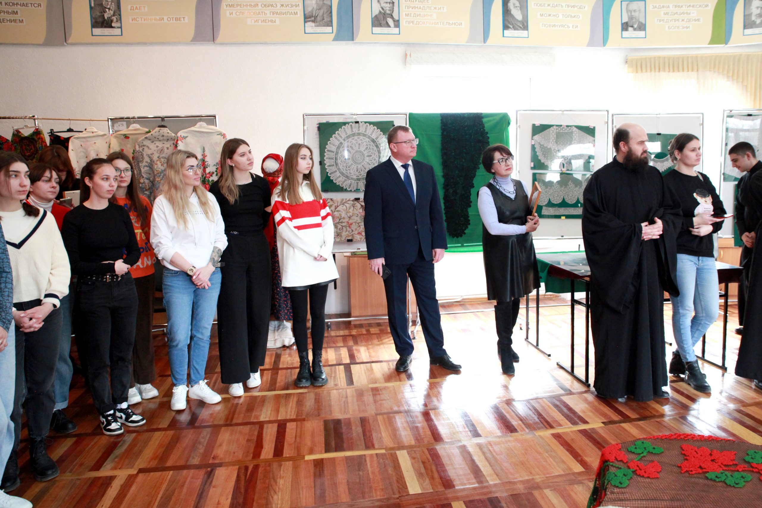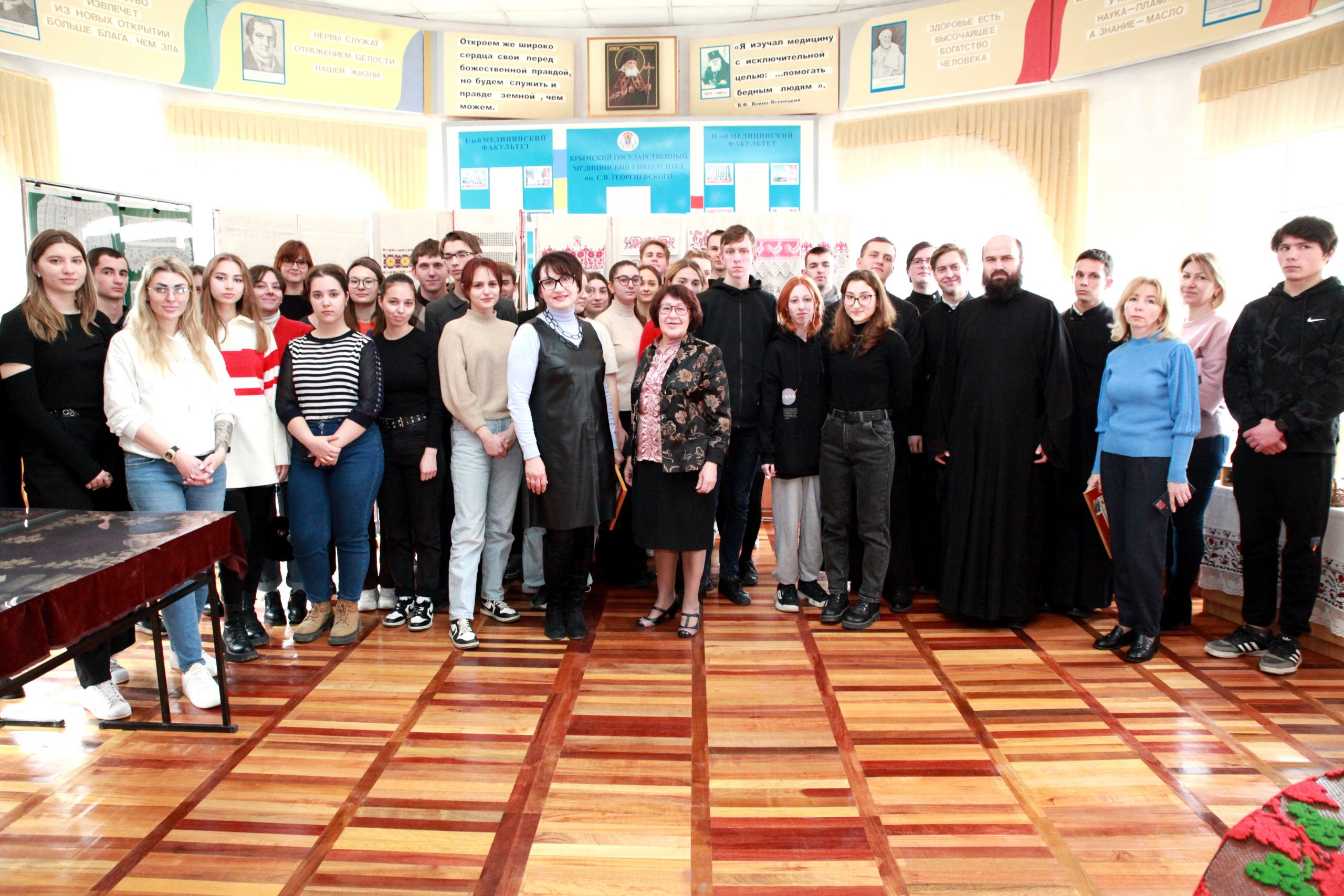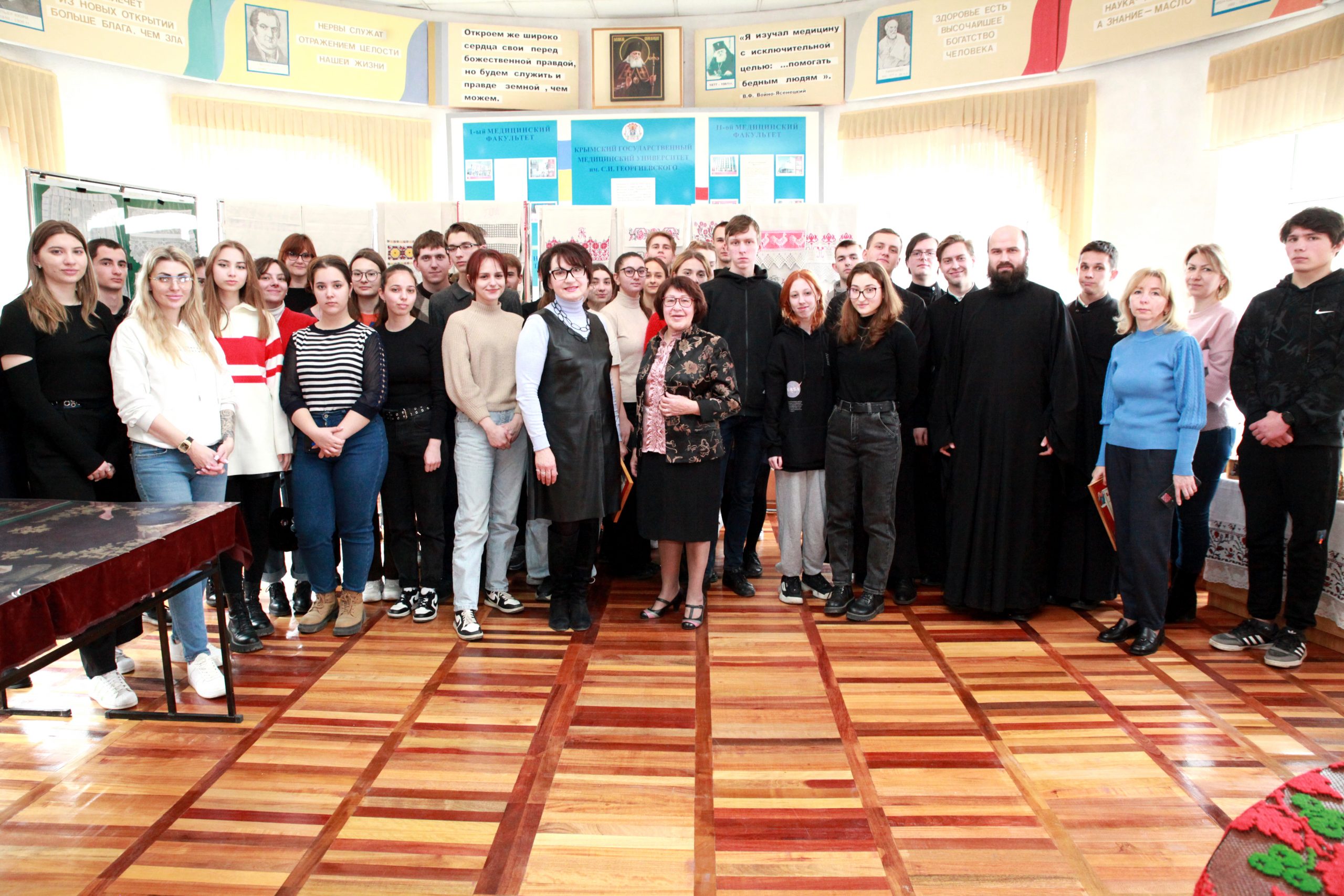 «Выставка русского декоративно-прикладного искусства не только полезная, но и, на мой взгляд, своевременная. Обучение в вузе – это ещё и часть воспитательного процесса. В наши задачи входит не только подготовить будущего врача, но и сделать так, чтобы он был интеллигентным духовным и нравственным специалистом», – отметил директор Медицинской академии Крымского федерального университета Евгений Крутиков.