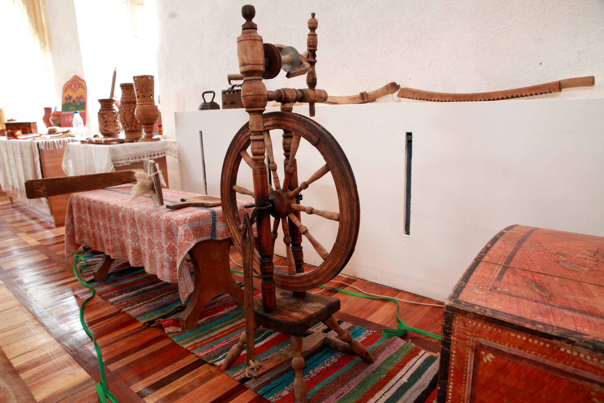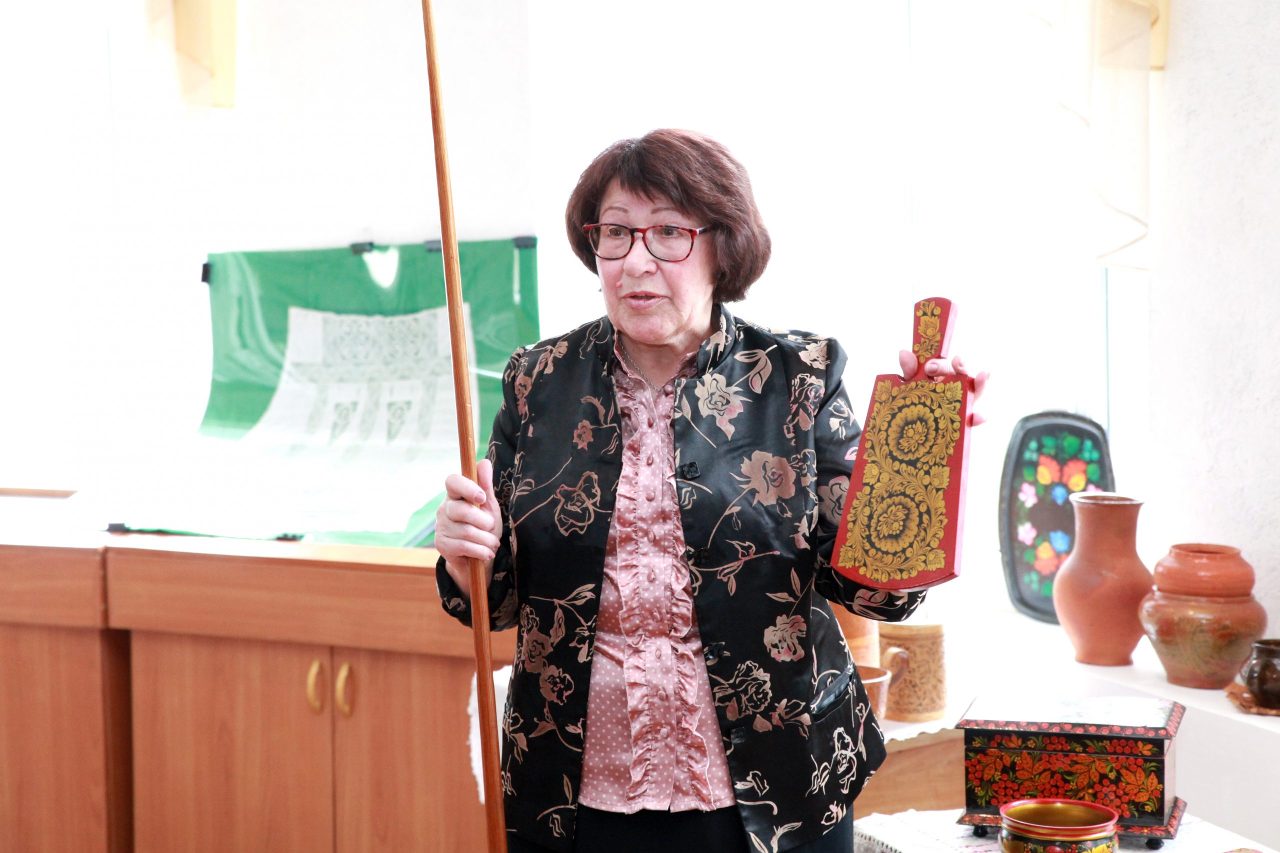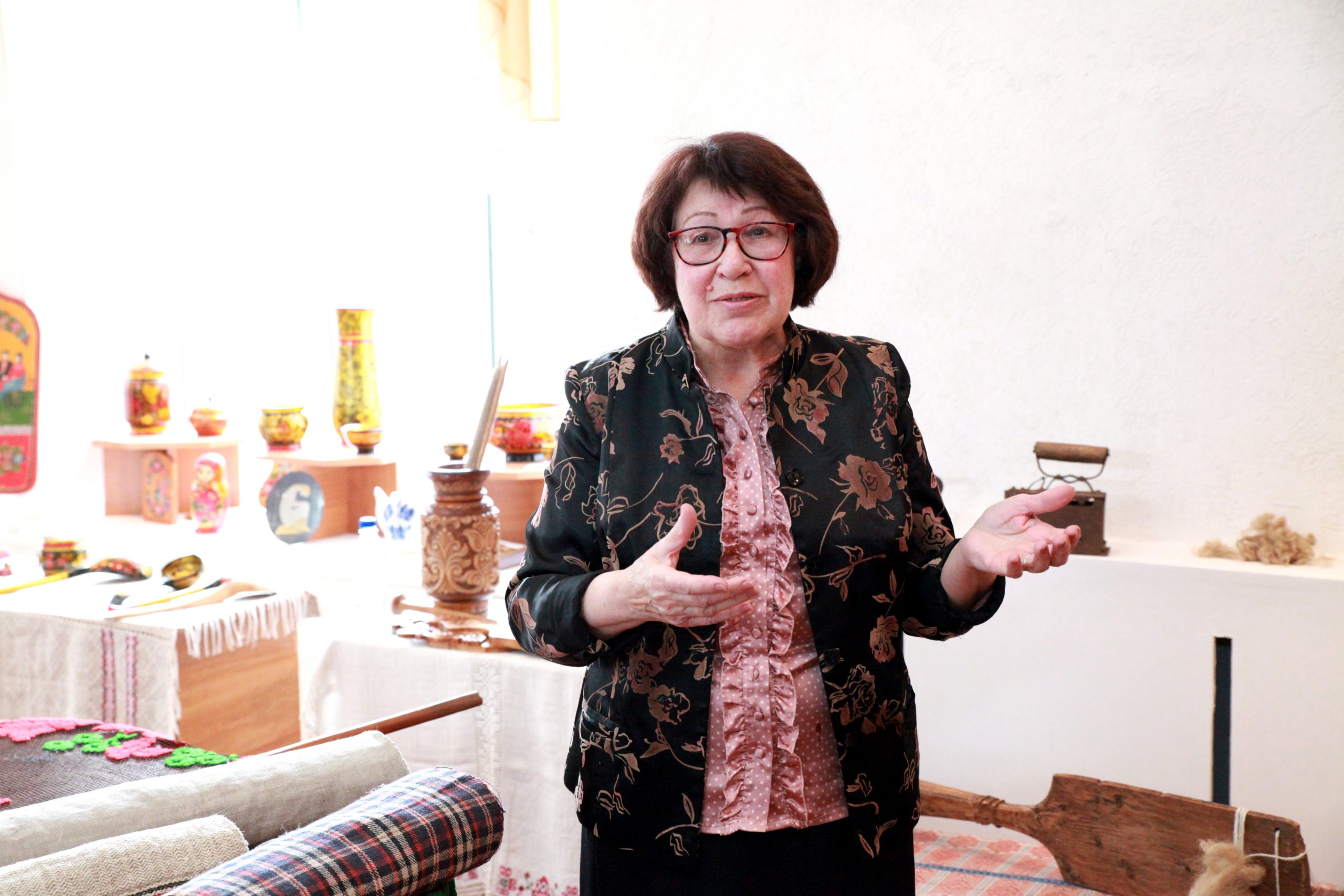 За почти два месяца работы выставку посетило более тысячи человек. Она включала не только историческую часть о развитии русской культуры и быта, но и интерактивную: все желающие могли прикоснуться к образцам декора, подержать в руках предметы быта – утюги и деревянную посуду, покрутить колесо прялки.