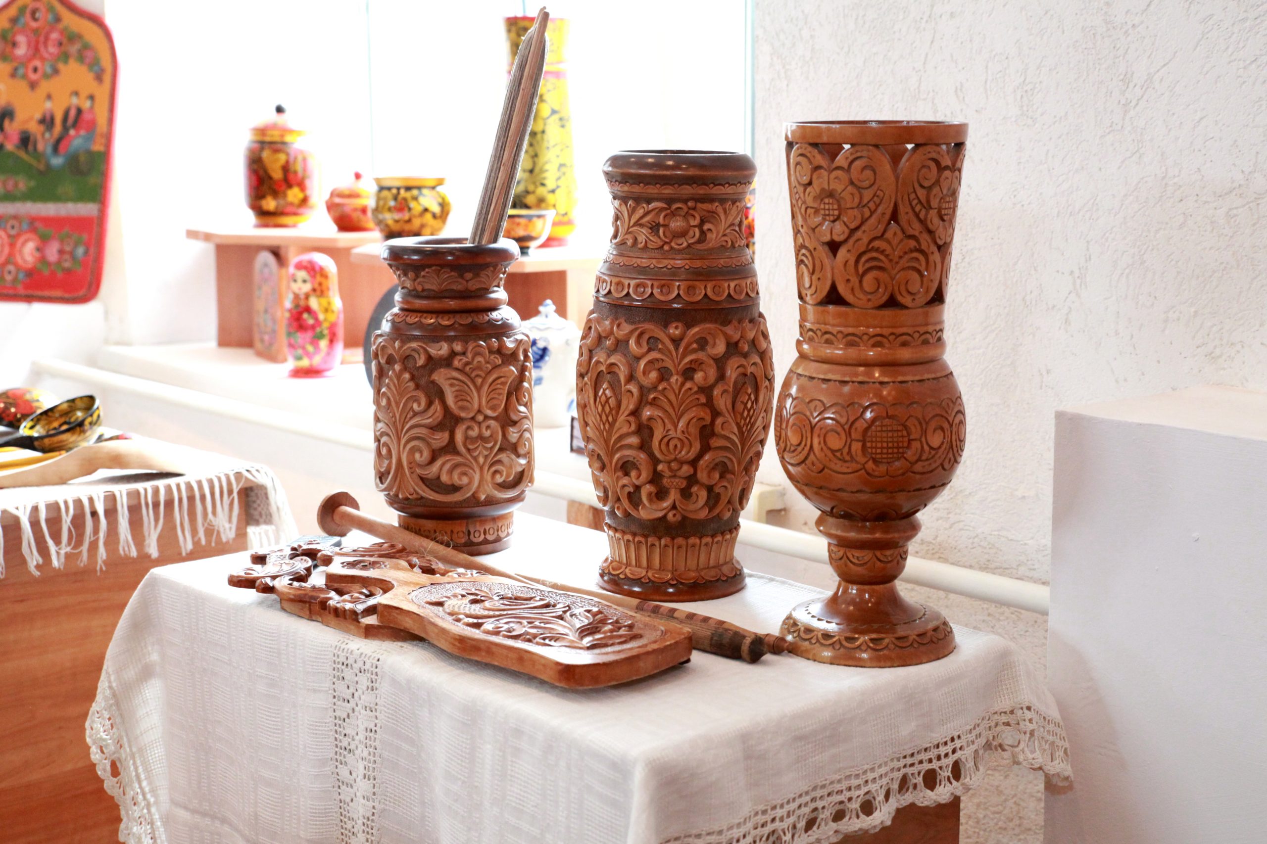«Керамические изделия, ткачество, вышивка, кружево, роспись по дереву и золотое шитьё лишь маленькая часть богатой русской культуры и быта, но сейчас эти ценные вещи – антиквариат, которыми сегодня почти никто не занимается. Представлены и вышитые работы монахинь, которым заказывали плести и вышивать кружева богатые родители для своих дочек в приданое. Это очень кропотливый труд, чтобы научиться такому мастерству, нужно было потратить много времени», – рассказала Людмила Манкова.