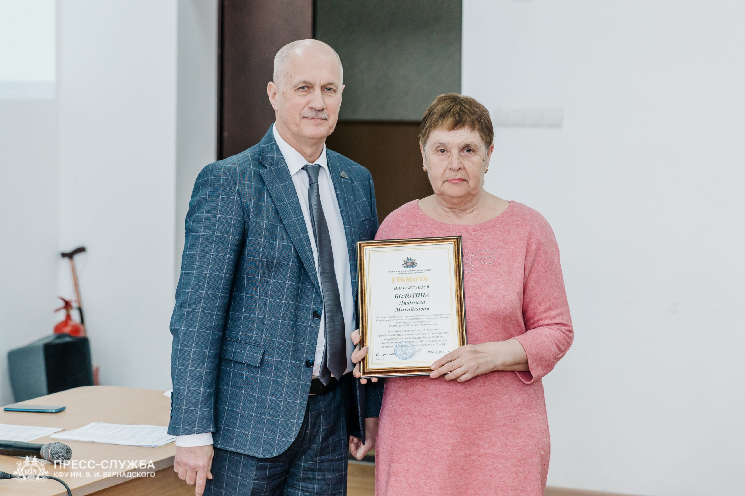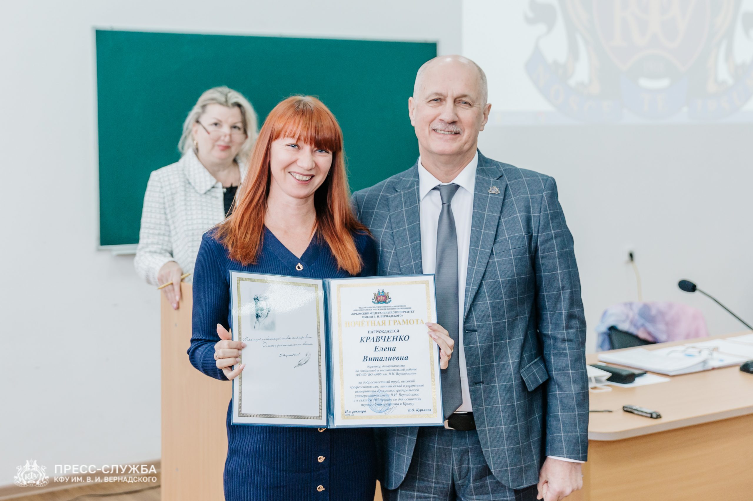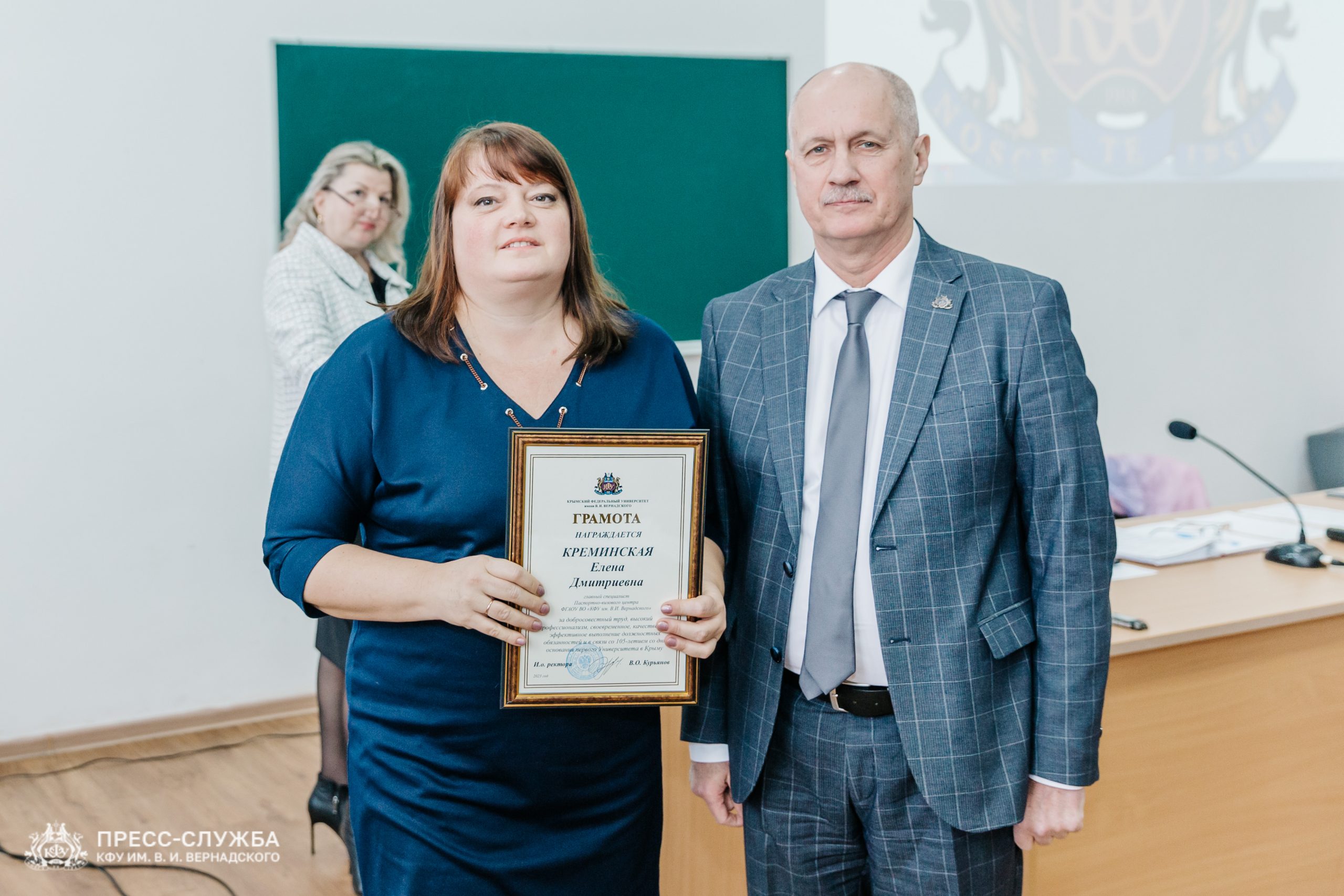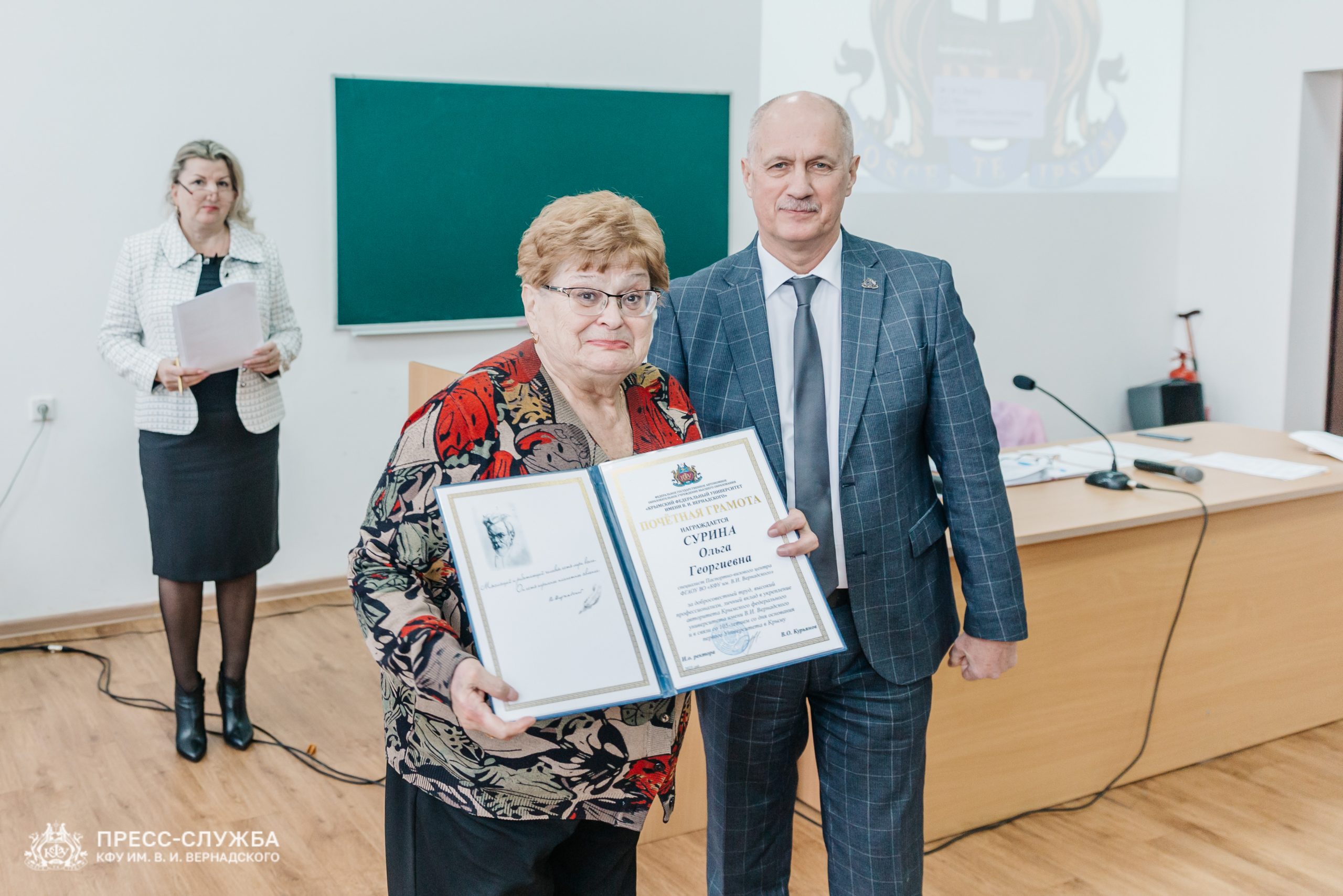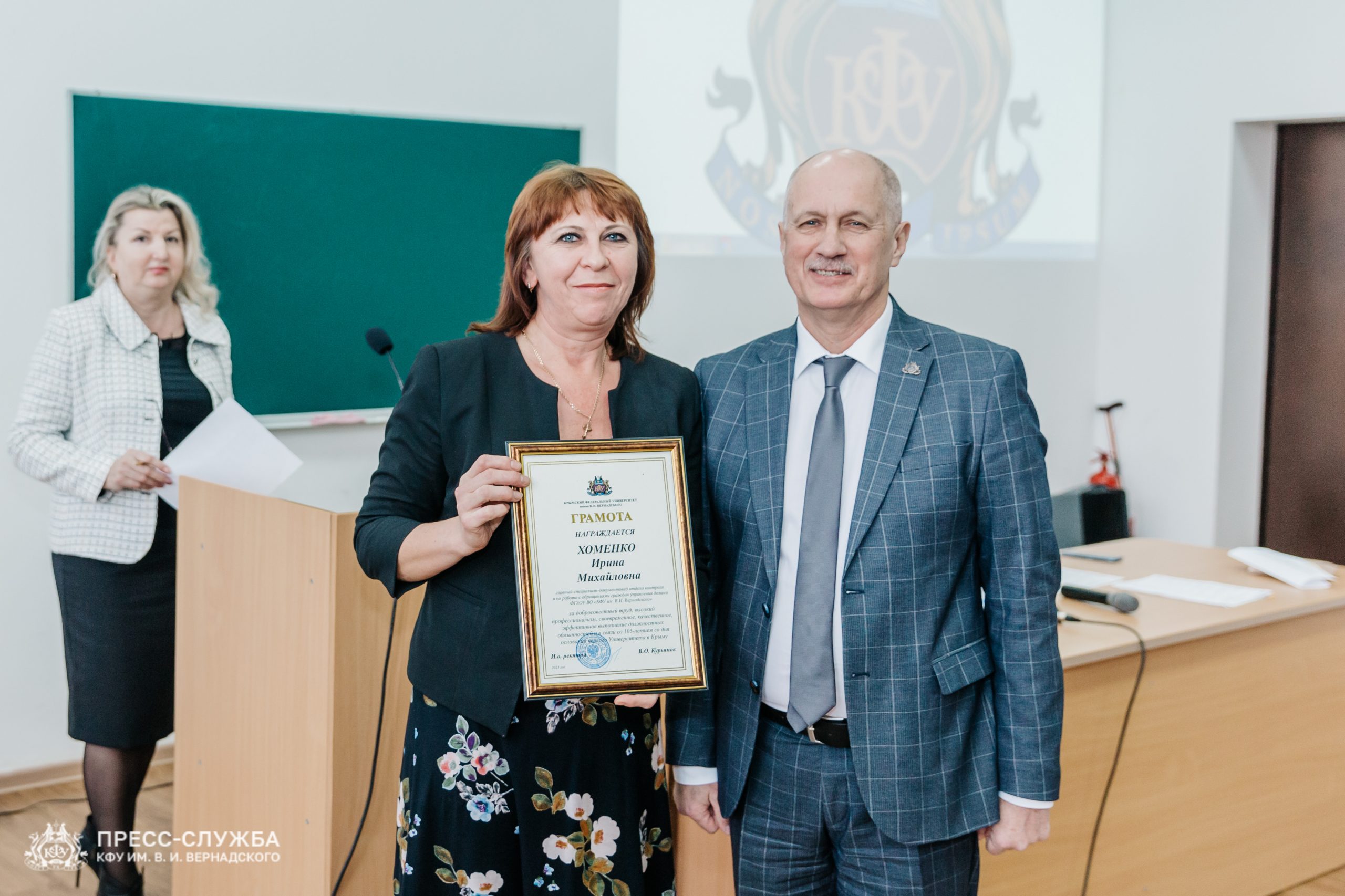 Также исполняющий обязанности ректора Владимир Курьянов вручил Премии имени Н.В. Багрова выдающимся сотрудникам, молодым ученым и обучающимся университета. Также были вручены благодарности и благодарственные письма Министерства науки и высшего образования Российской Федерации, медали «За верность Университету», почетные грамоты и звания «Заслуженный профессор Крымского федерального университета им. В.И. Вернадского» и ученые звания доцентов.