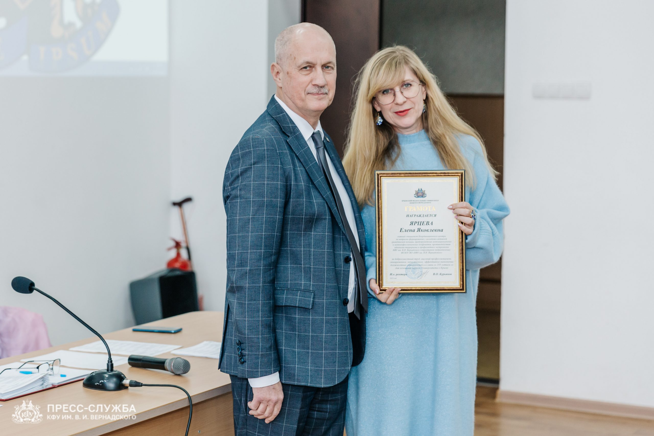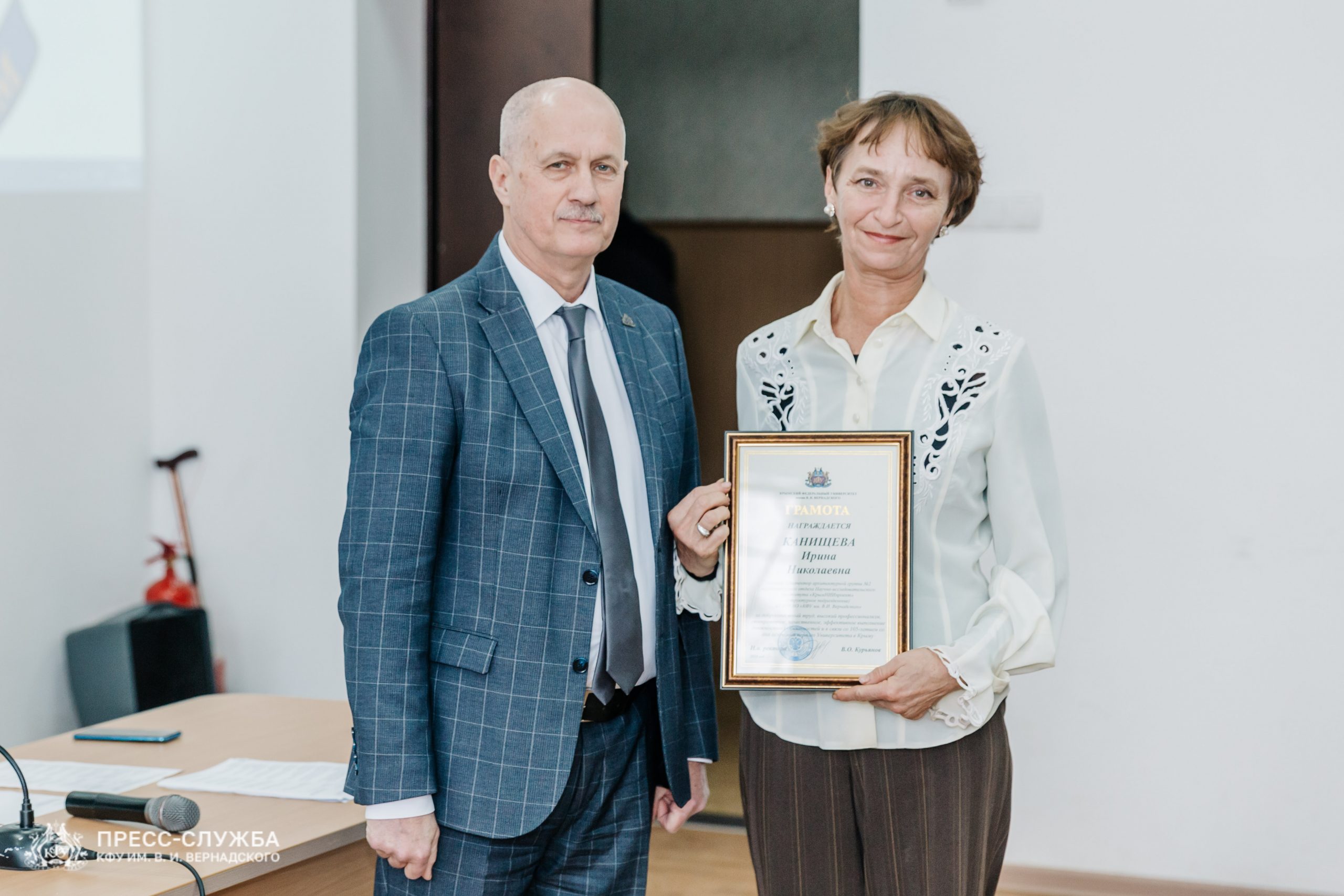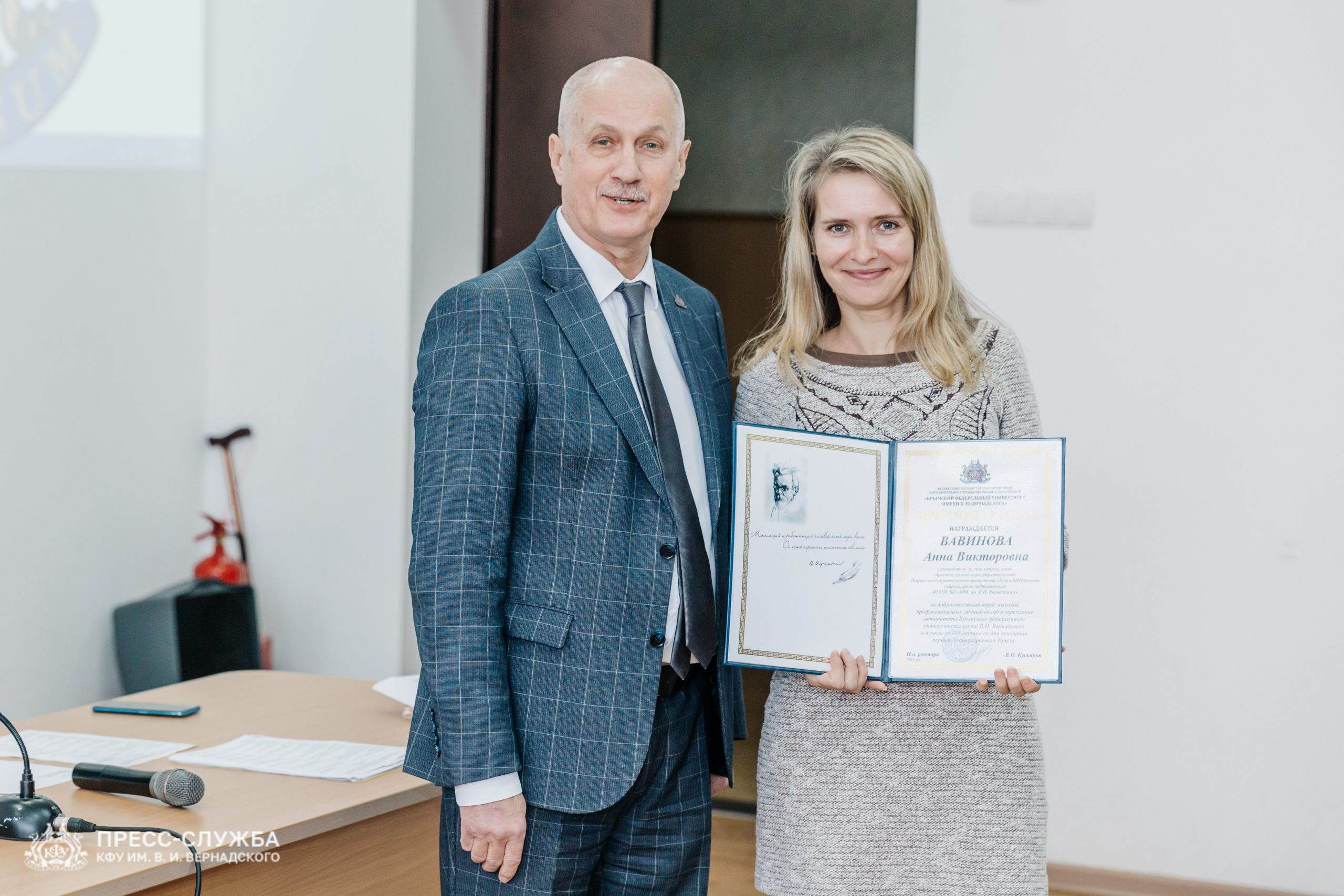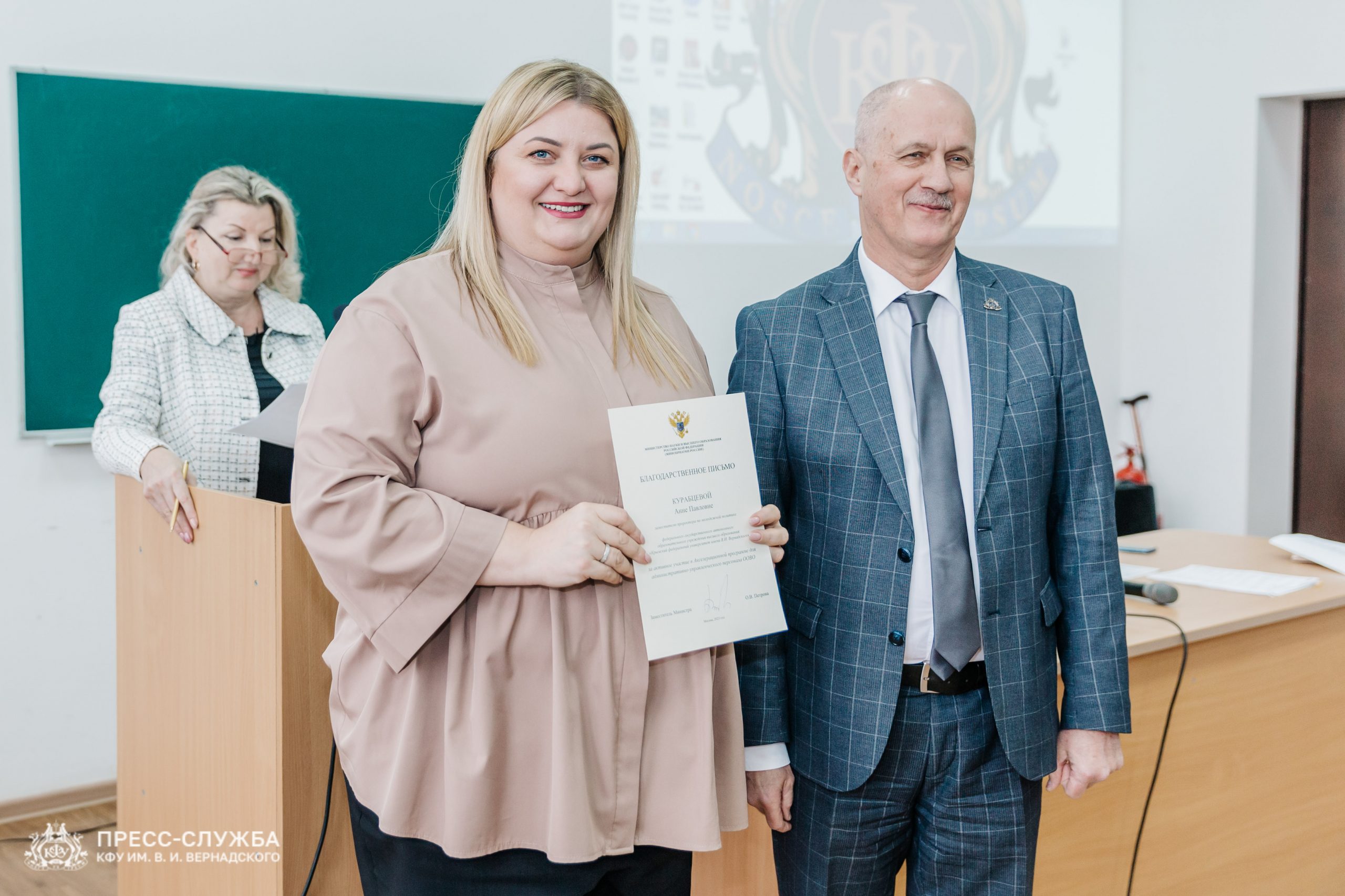 Также исполняющий обязанности ректора Владимир Курьянов вручил Премии имени Н.В. Багрова выдающимся сотрудникам, молодым ученым и обучающимся университета. Также были вручены благодарности и благодарственные письма Министерства науки и высшего образования Российской Федерации, медали «За верность Университету», почетные грамоты и звания «Заслуженный профессор Крымского федерального университета им. В.И. Вернадского» и ученые звания доцентов.