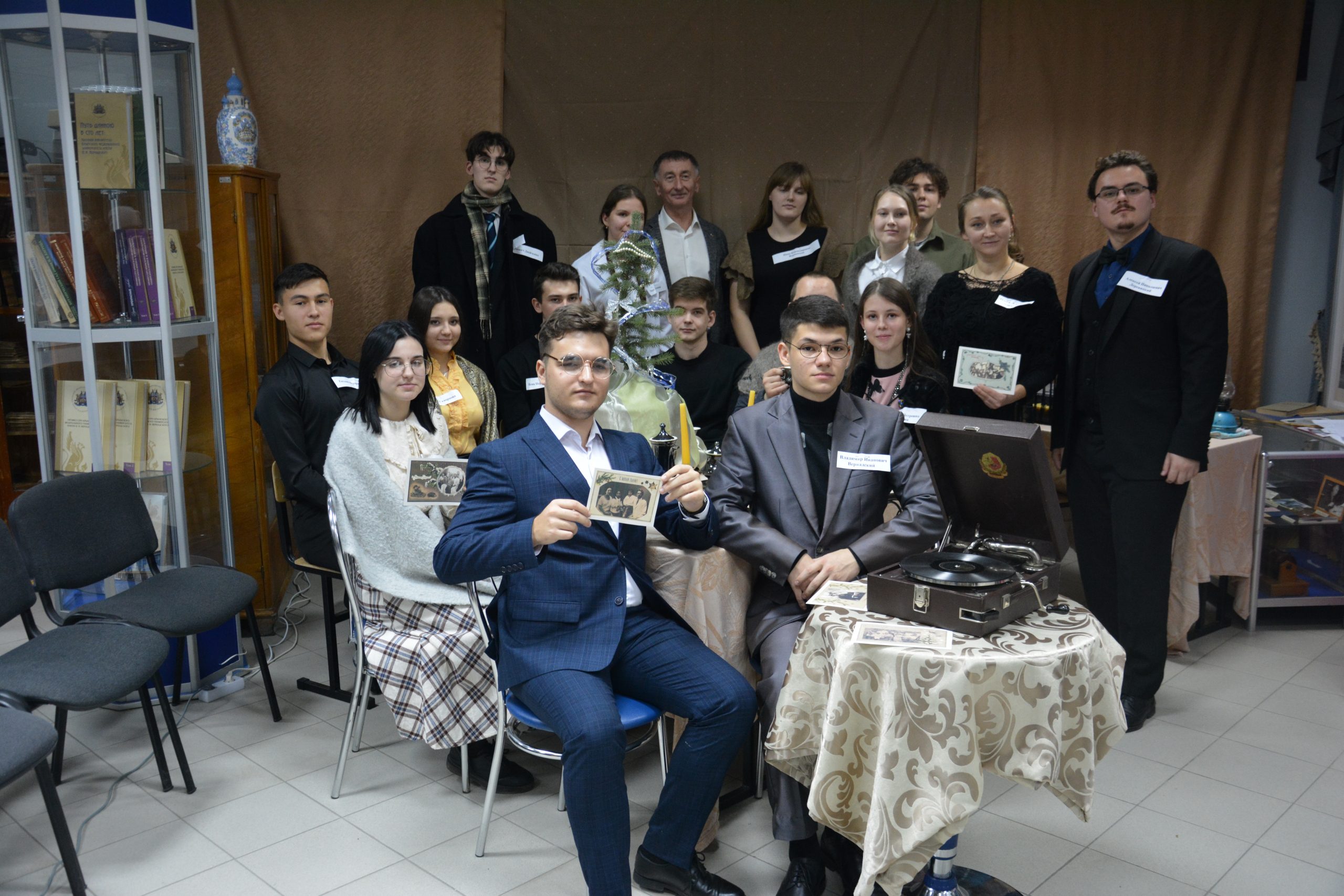 В экспозиционно-выставочном зале Музея истории КФУ им. В. И. Вернадского прошел вечер исторической реконструкции «Предновогодний профессорский кавардак 1920 г.», в рамках которого студенты исторического факультета Таврической академии гости погрузились в атмосферу предновогодней профессорской встречи, которая состоялась в ноябре 1920 года в квартире № 1 Николая Львовича Эрнста по улице Госпитальной.Гостями вечера стали соседи Эрнста – преподаватели Таврического университета – Евгений Федорович Скворцов с женой, Николай Васильевич Оглоблин с семьей, а также ректор университета Владимир Иванович Вернадский с дочерью Ниной.