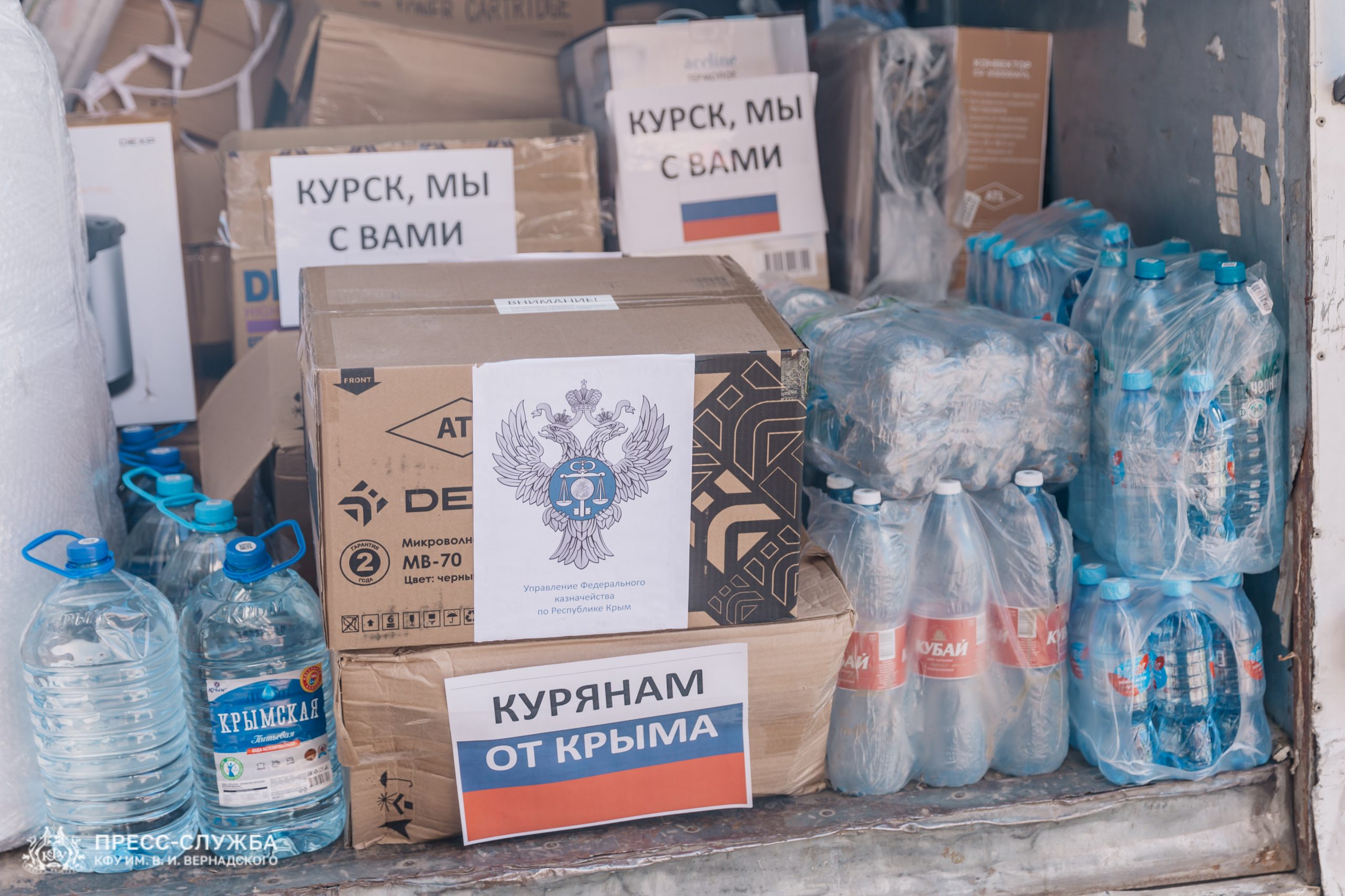 Народный фронт Республики Крым организовал сбор гуманитарной помощи для Курской области, в котором приняли участие и студенты Крымского федерального университета им. В. И. Вернадского.